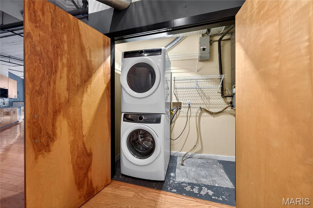Sellers circumstance is your Gain!!! Best priced 2bed, 2 full bath loft in the entire building! Priced $30,000 under market value for Quick Sale! Yes, that's Right... $30k, Instance Equity! Welcome to the Railway Lofts a beautiful owner occupied building nestled in the heart of Wash Ave kitty-corner from City Museum. This fabulous nearly 1500 sqft 2 bed , 2 full bath loft has gorgeous exposed brick and a wall of windows with custom up/down black out blinds bringing the outdoors in whenever you want! Features a wonderful chefs kitchen with granite counters and large center island. Stainless Steel appliances with gas stove (rare in lofts) and artisan patterned backflash and custom light maple cabinetry. Other amenities include: Gas fireplace (another rarity) , custom built in desk for your very own home office, large jetted soaking tub with separate large walk in shower, oversized laundry closet with full size stackable washer and dryer (stays w/ unit) extra storage and custom shelving thoughtfully maximizing every inch of useable space. As an added bonus this Loft also comes with additional secured storage closet across the hall from the unit and secured garage parking with even more storage! The Unit is bright and open with soaring ceilings ready for the most sophisticated buyer. Conveniently located to fun, food, sports complexes, universities and hospitals. Access Main Door in back of the building at 1620 Lucas Avenue ( door is marked )