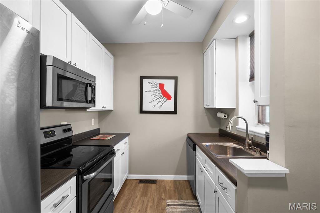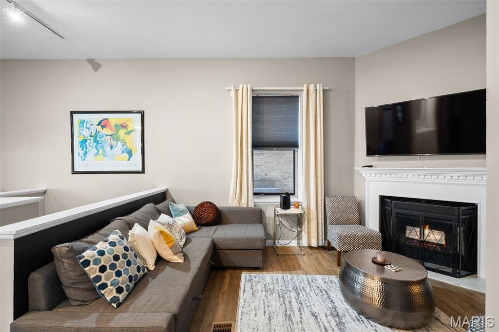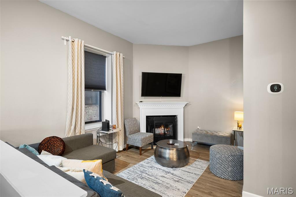 Big wheels keep on turnin’, proud 4309 Maryland keep on burnin’! Welcome to this corner, ground-level condo in the heart of the Central West End, where historic streets, walkable living, and everyday convenience come together. Maryland Plaza has been doing its thing since the 1930s, and nearly a century later, it still delivers. Just blocks from stunning landmarks, such as the Cathedral Basilica of St. Louis and one block from Schnucks, with Straub’s and Whole Foods nearby, this location makes last-minute grocery runs and spontaneous dinner plans dangerously easy. Built in 1906, this 2 bed, 2 bath end unit delivers character and comfort in equal measure. Step inside to a kitchen that feels polished but practical, featuring stainless steel appliances, white cabinetry, tons of counter space, and a charming little window that’s perfect for airing out your burnt bacon. The kitchen opens to a spacious living room anchored by a wood-burning fireplace with a crisp white mantle, ideal for cozy movie nights and elite Sunday “rot sessions.” A tucked-away reading nook adds just the right touch of charm. The main level includes the primary bedroom with a large closet and a full bath with a shower/tub combo. Downstairs, the finished lower level offers room for activities and then some. Think second living space, home office, playroom, or whatever chapter you’re currently in, plus a storage closet, a second bedroom, and another full bath. Bonus: this is a true turnkey property and includes all furniture, making move-in *effortless*. The only exclusions are the flat screen TV and the washer/dryer. The building itself is a stunner, showcasing classic stone masonry and beautifully carved architectural details that just don’t exist anymore. The complex also offers a pool with lounge seating, parking, and other sought-after amenities. You’re just blocks away from some of the best dining, cocktails, and shopping in the city. From Edera and Maryland House to Brennan’s, Drunken Fish, Clementine’s, Lululemon, Target, Ikea, and more, this location delivers every time. Historic, walkable, and full of personality, 4309 Maryland Ave Unit 4B keeps on rollin’. Cheers!