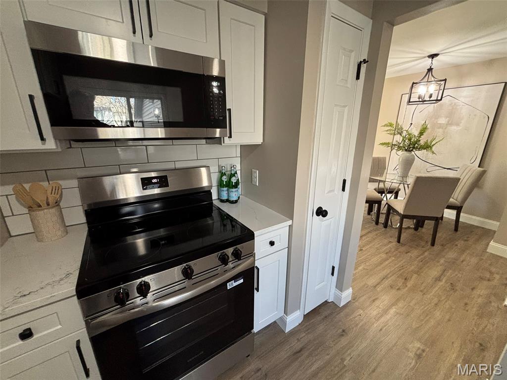 You DO NOT want to miss out on this stunning Maryland Heights renovation! 1840 Misty Moss Dr harbors over 1,100 square feet of living area, three bedrooms, and two bathrooms. The kitchen is unbelievable! Quartz countertops, soft-close cabinets, ceramic backsplash, Blanco sink, and stainless-steel appliances. The fridge stays! The entire home boasts beautiful new LVP flooring and a fresh coat of paint. The bathroom contains a ceramic tile shower surround with modern matte black shower fixtures. The home also provides an attached garage and fenced in back patio. Washer and dryer included with the purchase of this home. Enjoy easy living at 1840 Misty Moss Dr. Lawn / snow maintenance is included. The neighborhood also contains a clubhouse, pool, and pickleball court. Schedule your showing today!