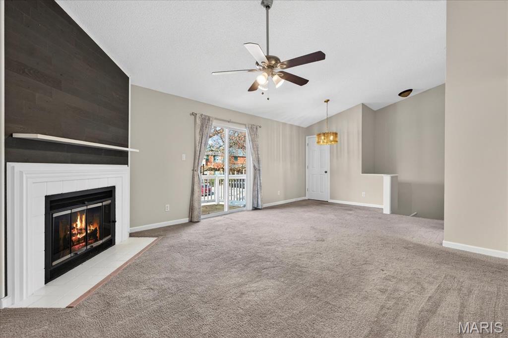 Step inside this charming upper-level condo in sought-after Brentwood Forest and feel instantly at home. Fresh paint in the hallways, living room, and bedrooms sets a modern, welcoming tone, while an open floorplan creates an easy flow from space to space. The living room is anchored by a cozy wood-burning fireplace, a large window that fills the room with natural light, and plush carpeting that adds warmth and comfort. The dining area features durable vinyl flooring, and the kitchen offers ample counter and cabinet space, including custom black-painted cabinetry and essential appliances—perfect for everyday cooking or weekend gatherings. You’ll love the two inviting bedrooms, also finished with soft carpeting for a cozy feel. The spacious primary bedroom connects seamlessly to the second bedroom, which opens to a private deck overlooking peaceful, lush surroundings—your own quiet spot for morning coffee or evening unwinding. With an updated bathroom, comfortable and convenient layout, and affordable living in a classic brick-style condo setting, this Brentwood Forest home is ready for you to move in and make your own.