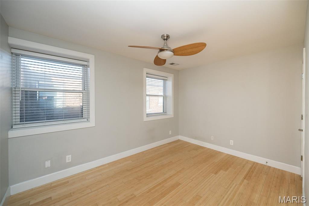 Don't miss this beautiful condo in the heart of the Central West End! An ideal opportunity for first-time buyers or savvy investors. The open-concept layout features bamboo flooring,natural light, and modern finishes. The updated kitchen offers custom cabinetry, stainless steel appliances, and a large center island with plenty of storage, perfect for everyday living or hosting friends all while flowing seamlessly into the adjacent dining/living space. The spacious primary suite features a walk-in closet, and private full bath with a double vanity. An additional bedroom and full bath with in-unit washer and dryer complete the space. Outside the large shared patio is an added bonus for relaxing or entertaining. Additional perks include an assigned gated parking space, private basement storage, and secure building access. Centrally located near BJC, WashU, SLU, Forest Park, the Grove. Enjoy the carefree lifestyle of condo living in one of St. Louis’s most desirable neighborhoods.