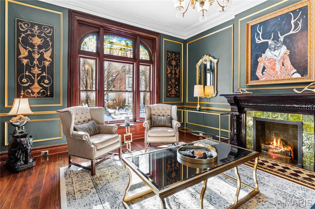 Built in 1884 for Civil War Major Leo Rassieur, this Victorian Manse in the heart of Lafayette Square blends historic character with modern comfort. The property includes the main residence, a two-story carriage house, and a garage, all set on beautifully landscaped grounds. The gracious living room overlooks the tree-lined street and showcases a large stained-glass window and one of many original tiled fireplaces. Hardwood floors, intricate millwork, pocket doors, and multiple fireplaces continue throughout. Formal living, parlor, and dining rooms offer effortless flow for entertaining. The chef’s kitchen features high-end appliances, generous cabinetry, a center island, a breakfast area, and a butler’s pantry with an adjacent powder room and bar. The primary suite includes abundant closets, a bath with heated floors, and a soaking tub beneath a bay window. Upstairs are three additional bedrooms, including one en-suite, plus a third-level bedroom, bath, and office. Second-floor laundry, a two-car garage, and a carriage house with an apartment and gym complete this property. Just steps from Lafayette Square Park and its vibrant dining scene. Lafayette Square Pool membership included (current waitlist approx. 5 years).