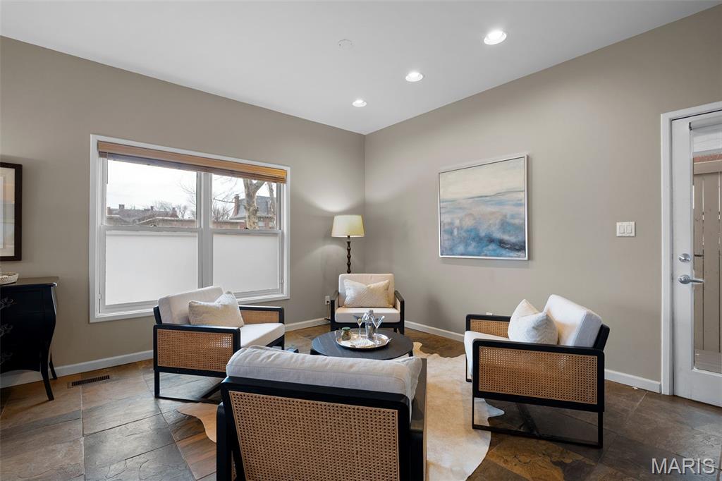 Spacious and stylish, 5089 Waterman Blvd offers 3 bedrooms, 2 full baths, and 2 half baths across 3,879 sq. ft. Built in 1989, this home blends newer construction with classic neighborhood charm. Enjoy a bright, open layout with an updated kitchen featuring stainless steel appliances that flows into the family and dining area. The large great room boasts soaring 23’ ceilings, perfect for entertaining or relaxing. Step outside to your private, partially covered deck—ideal for morning coffee or evening gatherings. Unique features include a new HVAC system, a 3-car garage, and a soundproof recording studio now converted into a home theater. Conveniently located near Forest Park, shopping, and dining (just 1.5 blocks to Euclid Ave). This home combines space, comfort, and a prime St. Louis location. Don’t miss your chance to see it!