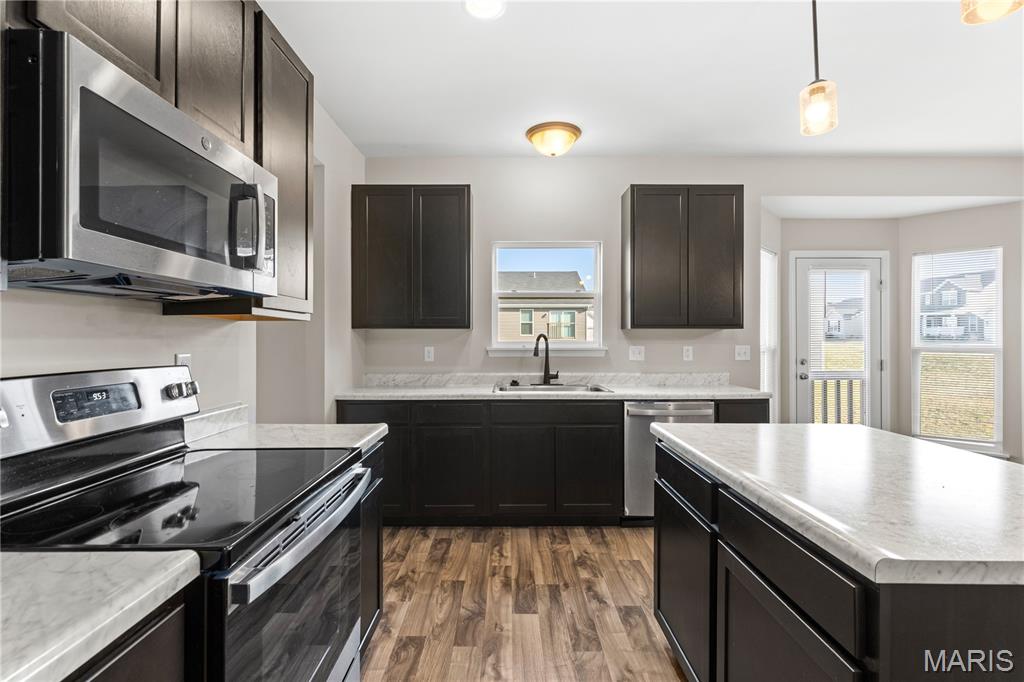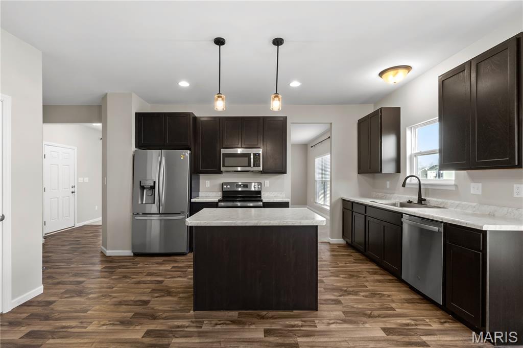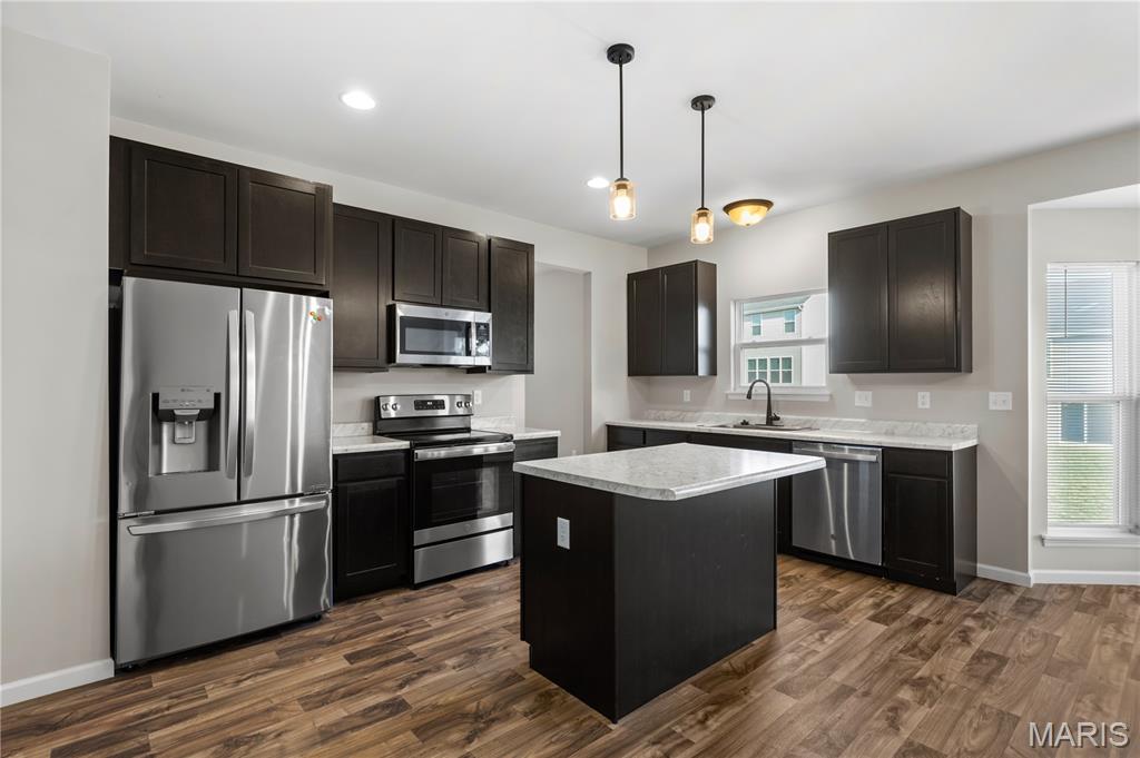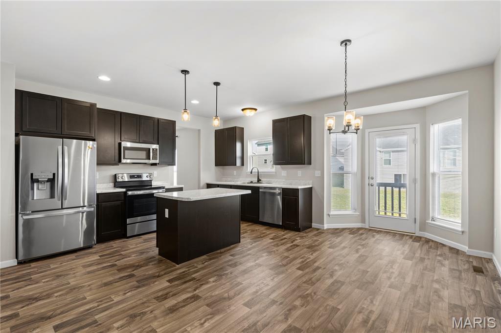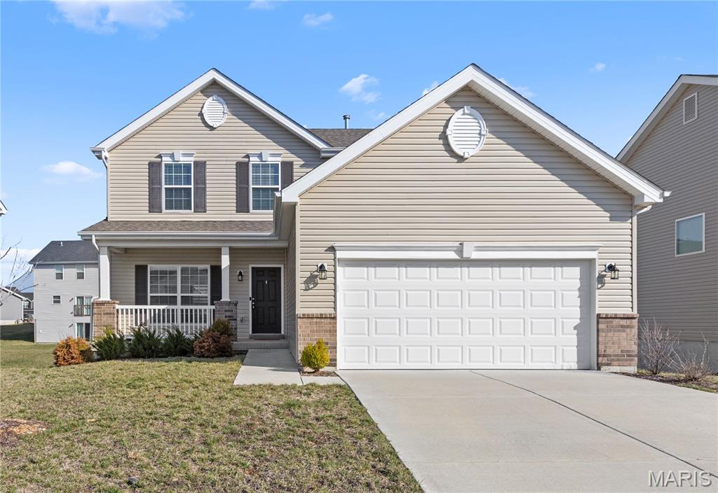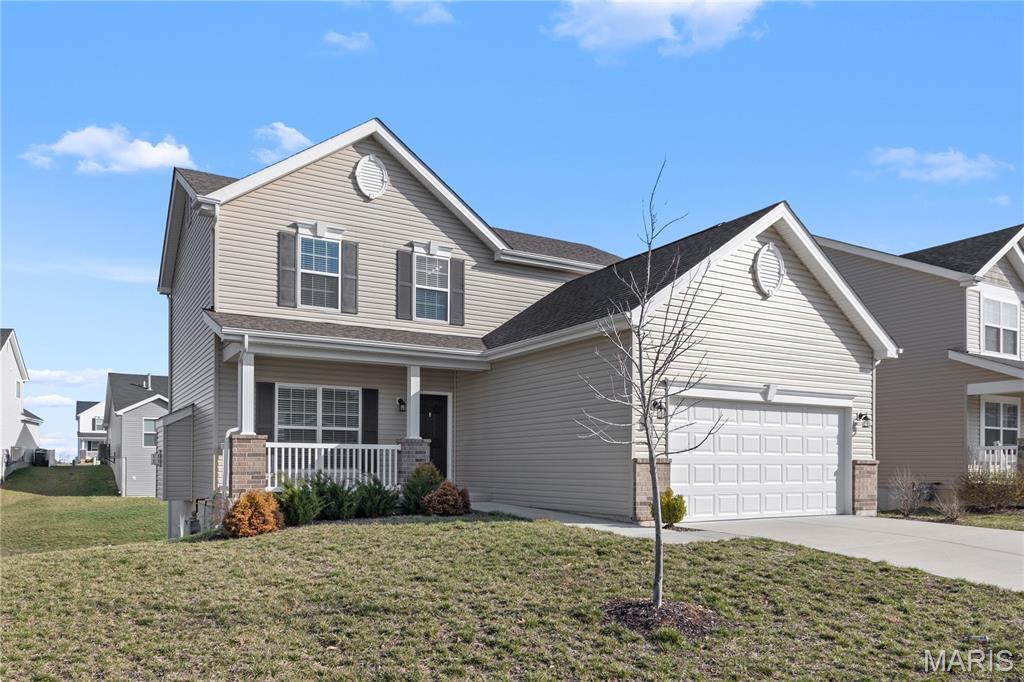 Welcome to this beautiful 2-story home built in 2022 in the desirable Prairie Wind community in Wentzville! This move-in ready home offers 3 bedrooms, 2.5 bathrooms, and an open floor plan designed for comfortable living and entertaining. The bright living room features a cozy gas fireplace and flows seamlessly into the modern kitchen with a center island, stainless steel appliances, and plenty of cabinet space. Upstairs you'll find a spacious primary suite with a walk-in closet, along with two additional bedrooms and convenient second-floor laundry. The walk-out basement with a bathroom rough-in offers great potential for future finishing. Situated on a level lot with a 2-car garage and located in the highly rated Wentzville School District. Convenient access to parks, shopping, dining, and major highways. Skip the wait to build—this nearly new home is ready for its next owner!