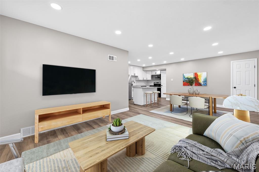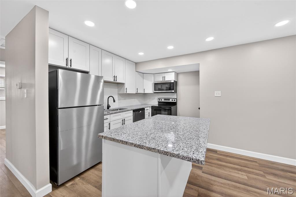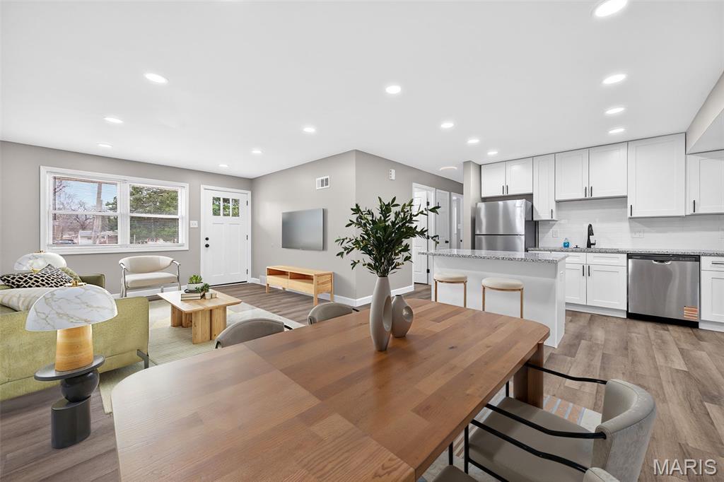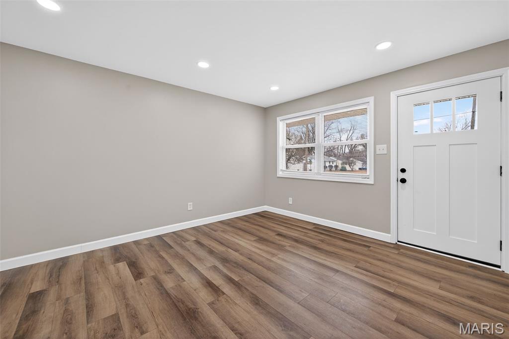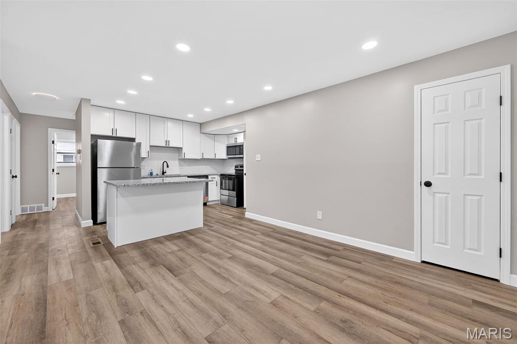 BACK ON MARKET- No fault of the seller. Buyer got cold feet. Step into this beautifully renovated 3-bedroom home where modern design meets peace of mind. The open-concept main level is flooded with light and anchored by a stunning, fully updated kitchen featuring white custom cabinetry, sleek granite counter-tops, a large statement island, and brand-new stainless steel appliances — perfect for both everyday living and entertaining. Every major system has already been taken care of, including a brand-new roof, windows, plumbing, electrical, electrical panel, water heater, gutters, board-and-batten vinyl siding and more, offering buyers true turn-key confidence. The main level shines with new luxury vinyl plank flooring, recessed can lighting, and modern fixtures throughout. You will also find three generously sized bedrooms, each thoughtfully refreshed creating comfortable and inviting spaces for rest or house guests. The fully remodeled bathroom delivers clean, contemporary style, while the unfinished basement provides endless potential for storage or future living space. With thoughtful updates from top to bottom and a clean, cohesive aesthetic, this home offers the rare combination of style, function, and long-term reliability — all ready for its next owner to move right in and enjoy. Priced to sell quickly! City of Florissant occupancy inspection is completed and passed! Clean inspections available upon request. Don’t miss your chance to make it yours!