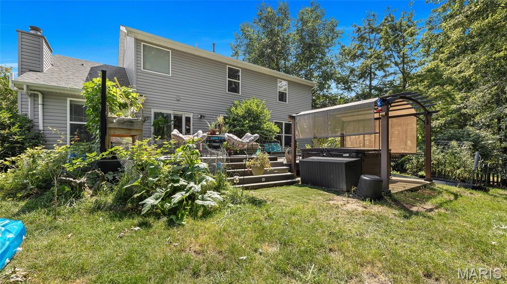 Stunning 3-Bed, 4-Bath Oasis in the Heart of Wentzville – Your Dream Home Awaits! Discover effortless luxury and everyday comfort in this thoughtfully designed, light-filled home, perfectly blending modern updates with cozy, family-friendly living. Nestled in one of Wentzville's most sought-after communities and served by the highly regarded North Point School District (known for top-tier academics and strong community support), this residence offers the ideal blend of suburban tranquility and convenient access to parks, shopping, and St. Louis amenities. Step inside to an open, inviting main level where the gourmet kitchen steals the show: sleek granite countertops, a striking custom stone backsplash, generous walk-in pantry, oversized island, and seamless flow into living spaces—perfect for casual meals or hosting gatherings. Unwind by the wood-burning fireplace in the warm Family Room or the gas fireplace in the expansive Great Room. Outside, your private fenced backyard paradise awaits: mature shade trees, a soothing hot tub for relaxing evenings, and ample garden space for hobbies or play. Upstairs, a spacious loft provides endless versatility—as a playroom, home office, or cozy lounge. The secondary bedrooms feature ample walk-in closets, while the luxurious Primary Suite impresses with dual walk-in closets, a spa-like en-suite bath (including a deep soaking tub, custom stone shower), and peaceful backyard views. The fully finished lower level expands your lifestyle even further: a second Family Room (ideal for movie nights or game days), a dedicated Exercise Room with premium gym flooring, an additional half bath, and abundant storage. Bonus perks include easy access to the neighborhood pool for summer fun—just a quick walk or drive away! Don't miss this rare opportunity in Wentzville's thriving market. Video tour available—schedule your private showing today and fall in love!