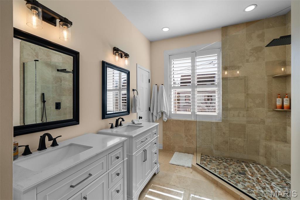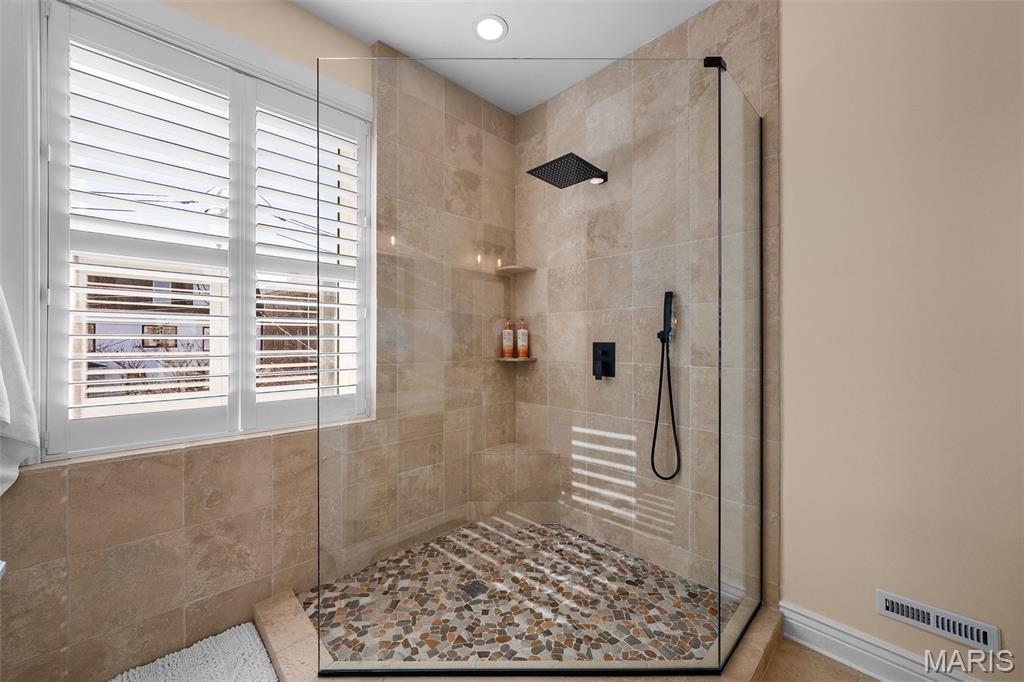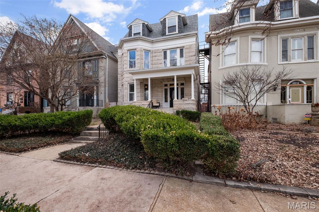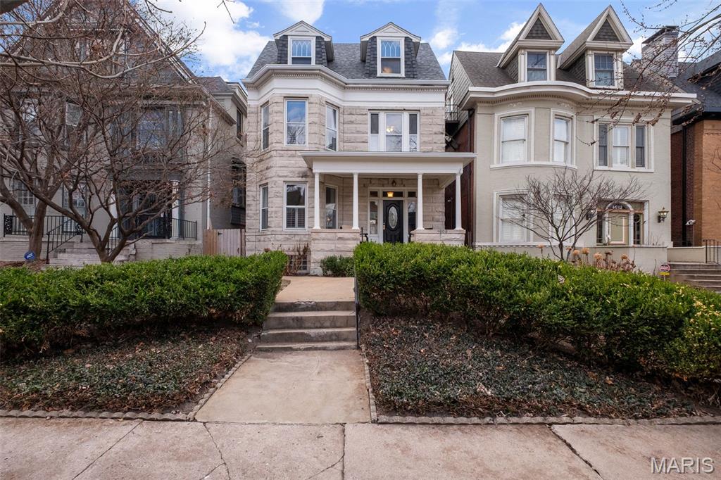 If Tootie Smith came barreling down the stairs whispering “Meet me in St. Louis,” she’d feel right at home at 4608 McPherson Ave! Built in 1905, just one year after the 1904 World’s Fair, this home has been quietly showing off for over a century, and it still hasn’t run out of reasons to do so, offering 5 bedrooms & 3 baths across beautifully updated living spaces. The stately stone facade and covered front porch create a timeless first impression, offering the perfect setting for morning coffee or an evening gathering. Inside, the original staircase makes a proper first impression, flanked by fresh paint and brand new bamboo hardwood floors that extend throughout the main living areas, blending historic character with refined updates. The living room is bathed in natural light from bay windows and anchored by one of four fireplaces (one functional, which just makes it more exclusive), creating an inviting yet sophisticated gathering space. The formal dining room offers generous proportions for hosting holidays and elegant dinner parties alike. The kitchen, fully remodeled in 2023, delivers both style and substance—granite countertops, stainless steel appliances, solid wood cabinetry, and a substantial center island designed for effortless entertaining. The powder room has been thoughtfully redone, and extensive plumbing and electrical updates enhance everyday comfort and confidence. The second level features a spacious primary suite with its own fireplace, oversized windows, bamboo flooring, and an updated ensuite bath complete with double vanities, a walk-in rain shower, heated floors, and a large closet. This floor also includes flexible living space, an updated laundry room, and the potential for an additional bedroom, office, or private den. The third floor expands the home’s versatility with three bedrooms and a fully renovated bath finished in porcelain tile, along with new HVAC and original leaded glass windows that honor the home’s architectural integrity. Recent improvements include remodeled kitchen and baths, updated systems, fresh paint throughout, new flooring on all three levels, and a new roof and gutters in 2026. Outdoors, a large deck, low-maintenance gravel courtyard, and two off-street parking spaces offer rare convenience in the Central West End. Just steps from BJC, Euclid Avenue, Forest Park, close proximity to Wash U & SLU, and the neighborhood’s premier dining and shopping, this home pairs historic distinction with modern refinement—ready for its next chapter. Cheers!