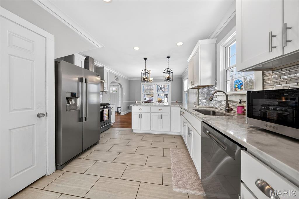 This CHARMING home in Webster Groves retains some of its 100-year-old features, including hardwood floors, crown molding, a beautiful fireplace in the main room, and abundant natural light. It boasts modern features as well, including an updated chic kitchen and sunroom, updated bathrooms, a partially finished basement, and a walk-out-deck on the second floor. Unlike most homes this age, it has an open floor plan, great for guests and entertaining. It was repainted an inviting color in Fall of 2023. Other recent updates include a brand new dishwasher (2026), an pergola covering the back patio (2025), new windows surrounding the study (2025), an insulated storm door leading from the bedroom to the upstairs deck (2025), an insulated metal front door (2024), a new basement door (2020), a functioning sump pump (2023), and functioning blinds on every window (2019). Extra 500 square feet in basement with rough in. The backyard is very spacious and lined by neighbors’ fences on either side. ALL NEW PAINT ALL MAIN FLOOR MARCH 2nd, NEW PHOTOS w/ NO SNOW March 6th.