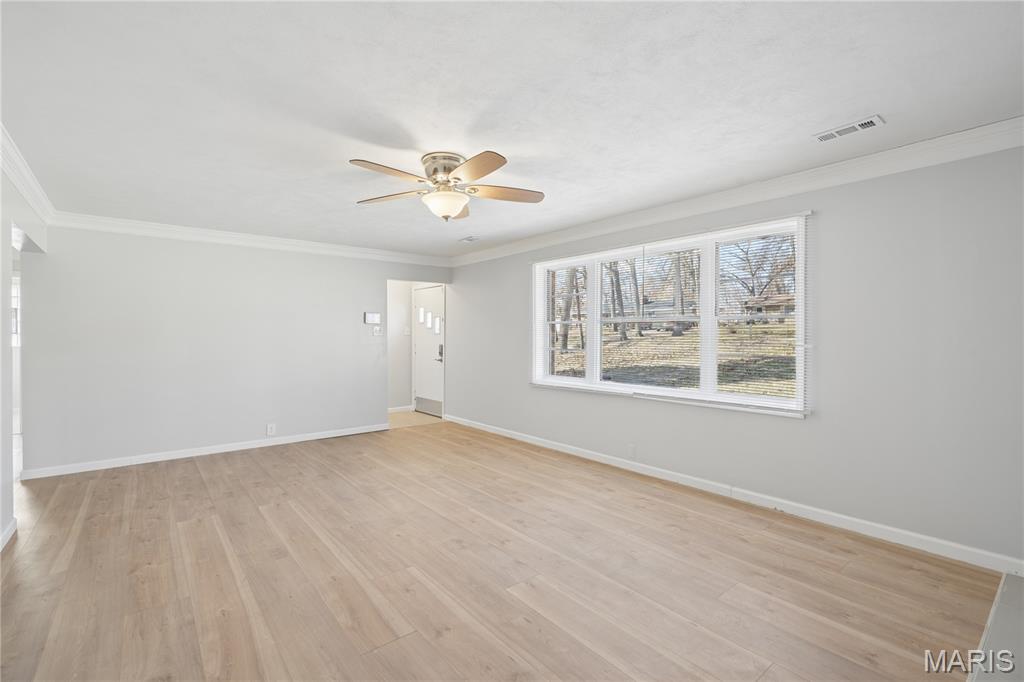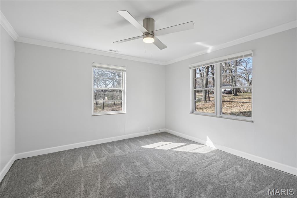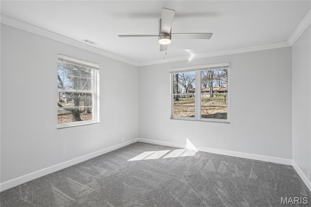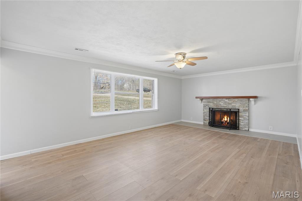 Just in time to SPRING on over to 332 Argent Ave. Located in Ferguson, Mo.! This charming 2 bed 1.5 bath brick ranch style/slab home is situated on a large lot!! Your request was for land and we heard ya! As you enter the home, you are embraced by the generous size living room w/ fireplace and LVT Flooring head on in to the eat in kitchen area w/granite counter tops, plenty of cabinet space, pantry, and water filtration system. Kitchen leads to finished laundry area w/ washer and dryer, laundry sink, access to patio and clean attic w/pull downstairs. Privacy patio leads to graciously sized back yard perfect for any type of gathering/entertaining your heart desires. Multi-functional room could be used as a Den/Office/Sitting Room or even a bedroom (with an added closet) this room is embraced with another fireplace and plenty of natural lighting. Oversized Garage with area for a handyman workshop, interior access and has a bonus room w/electric, has water capability and could be created into your, "CAVE". Bedroom features carpet flooring, bathrooms w/ ceramic tiling and bright lighting. New Roof, gutters, updated electric, and flooring. This property has so many endless possibilities...so what are you waiting for??? Get your showings scheduled today!