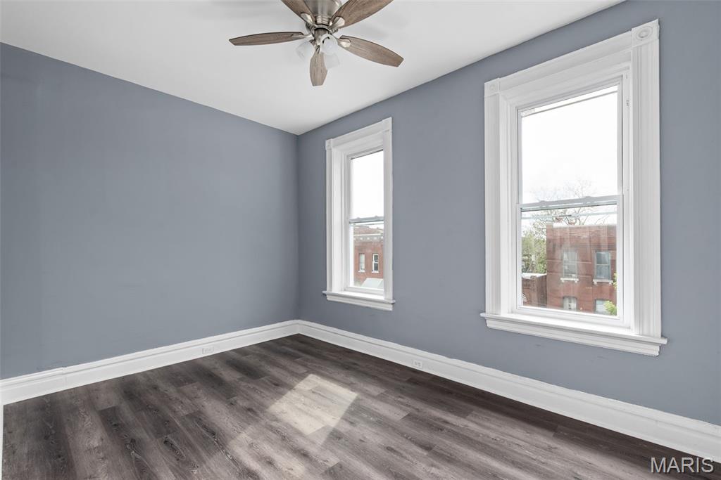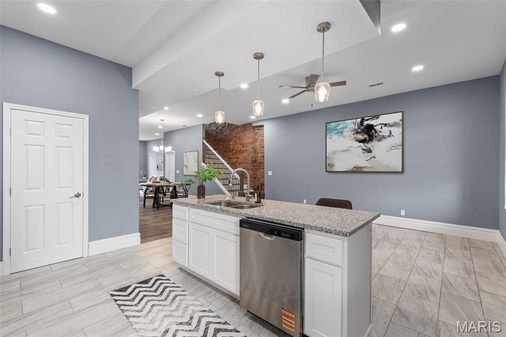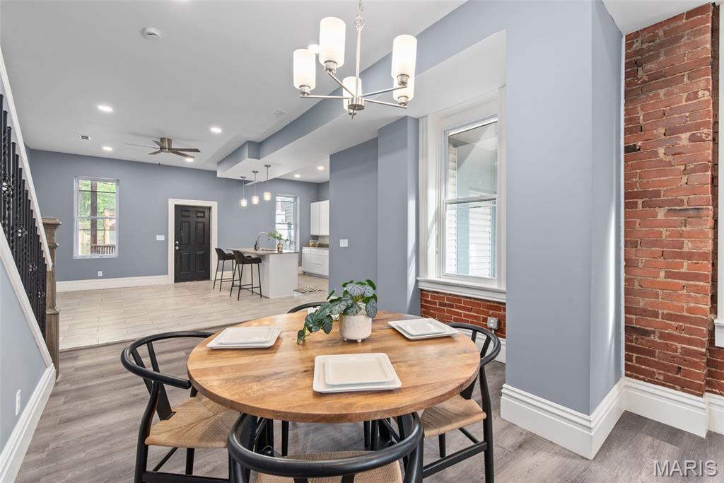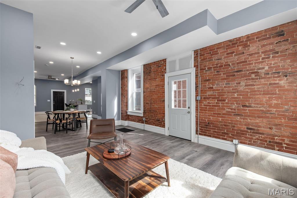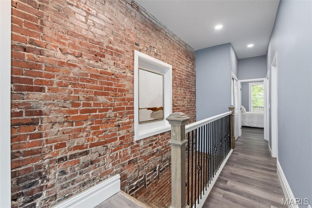 Fully renovated from top to bottom, this home beautifully blends historic charm with modern luxury. Step inside to an open floor plan featuring exposed brick walls, soaring ceilings, & luxury vinyl plank flooring throughout. The designer kitchen shines with white cabinetry, granite countertops, stainless steel appliances, & a large center island—perfect for entertaining. Upstairs, the spacious primary suite offers a private balcony, a walk-in closet, & a spa-like ensuite bathroom with a double vanity & custom-tiled shower. You’ll love the convenient upstairs laundry, just steps from all three bedrooms. The finished basement adds valuable living space with a comfortable living area and a bathroom—ideal for guests, a media room, or a home office. Major updates include new plumbing, electric, roof, HVAC, & more for peace of mind and easy living. The fenced backyard features a deck & a covered parking pad. Located in the vibrant Benton Park West neighborhood, close to shops, restaurants, parks, & highways—this move-in-ready home is the perfect combination of style, comfort, and convenience.