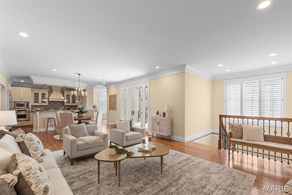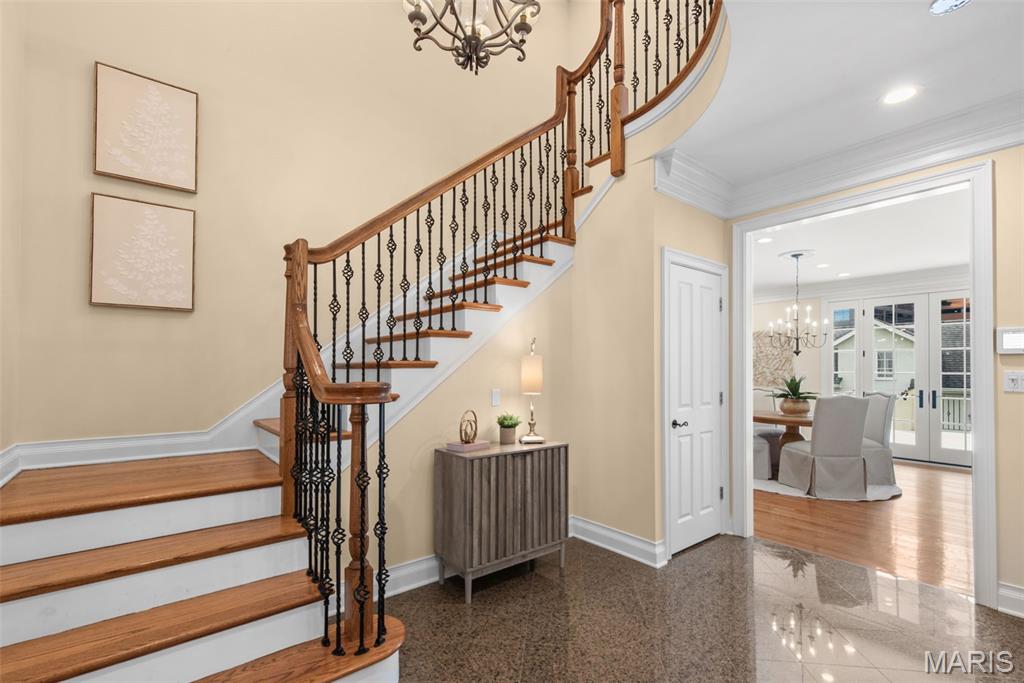 Set on a beautiful Clayton street, this architecturally striking estate offers refined living, exceptional craftsmanship, and the rare advantage of a private carriage house apartment. Deceptively spacious, the home unfolds well beyond its curb presence, with a layout that reveals generous living areas at every turn. The main residence features over 4,800 square feet with elegant formal and casual living spaces designed for both everyday comfort and sophisticated entertaining. A marble foyer with arched entry introduces richly detailed interiors including wide moldings, plantation shutters, and multiple gas fireplaces. The chef’s kitchen is beautifully equipped with a 6-burner Dacor range, Sub-Zero refrigerator, extensive cabinetry, and a fully appointed butler’s pantry with dual sinks and dishwashers—ideal for seamless entertaining. Just beyond the pantry, a mud room offers additional washer and dryer hookups, providing the option for convenient main-level laundry. Upstairs, the luxurious primary suite offers a private sitting room with coffee station, balcony, custom walk-in closet, and a spa-inspired bath with double-sided shower, jetted soaking tub, and separate water closets. Two additional en-suite bedrooms and convenient upstairs laundry complete the upper level. The walk-out lower level expands the living space with a wet bar, theatre room, gym area, guest bedroom, and full bath. A standout feature of the property is the detached 3-car carriage house garage with private apartment, offering exceptional flexibility for guests, extended family, an au pair suite, home office, or potential income opportunity. With timeless architecture, extensive amenities, and versatile living spaces, this Clayton residence presents a rare combination of elegance and functionality.