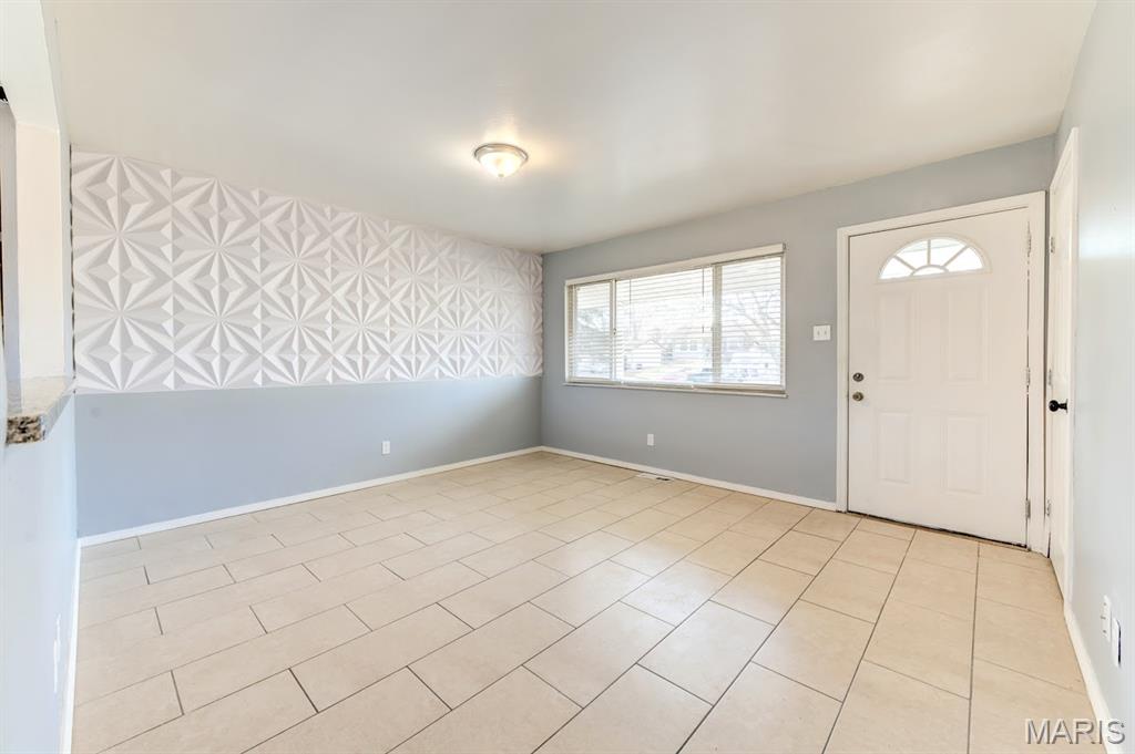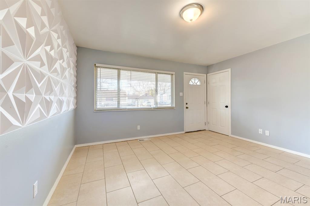 Welcome to a nicely recently updated 3 bedrooms, 3 baths property with a finished basement, conveniently located very close to Old Florissant, shopping area, transportation and parks. The first floor has a living room with half wall opening to eat-in kitchen giving it a more open floor plan feel. New rood and newly updated Ceramic flooring thru-out the house. Updated kitchen has plenty of cabinets for storage, granite countertop and newer appliances. Slider walks out to a large patio and fully fenced private backyard. The 3 bedrooms are good size, and the master has a full bath with over-sized shower. Updated finished lower level with a spacious recreation/family room along with a full bath and 3 extra bonus rooms that could be used as office, sleeping area or game room. Specially added to the house is the over-sized used to be one-car garage but converted to a big room with ceramic flooring, window and door which lead to the front!!!