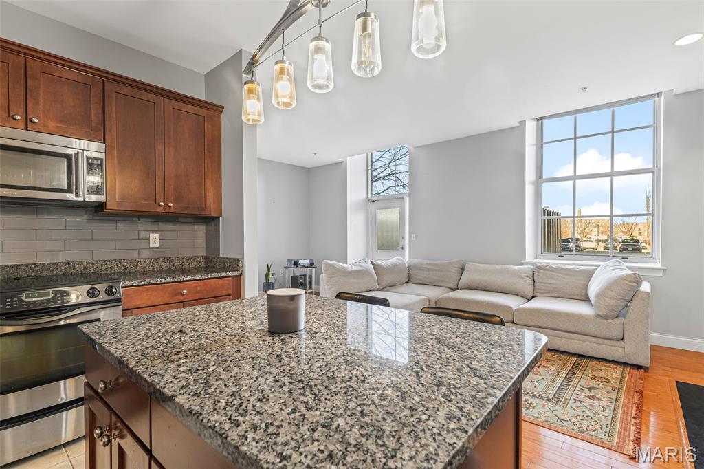 Welcome home to where old-world charm meets modern living in this private-entry, first-floor condo located in the desirable Lafayette Square neighborhood. Step inside this expansive 2-bedroom, 2- full bath residence and enjoy an abundance of natural light reflecting off the beautiful hardwoods! Spacious kitchen perfect for entertaining around the large granite island that overlooks your living room with cozy gas fireplace. Primary suite is extra spacious offering plenty of room for an office area or your wardrobe. Equipped with a split floor plan, this condo places the second bedroom on the opposite side of the condo, providing privacy and comfort for guests. Completing this exceptional offering is a private, fenced patio entrance with electric &private gate access leading to a grassy knoll and secure parking. Take a spring-time stroll around Lafayette Square ending at one of the many tasty restaurants in the immediate neighborhood. Located adjacent from Soulard, enjoy all of what these charming St. Louis neighborhoods have to offer! Schedule your showing today—this Georgian condo in Lafayette Square won’t last long!