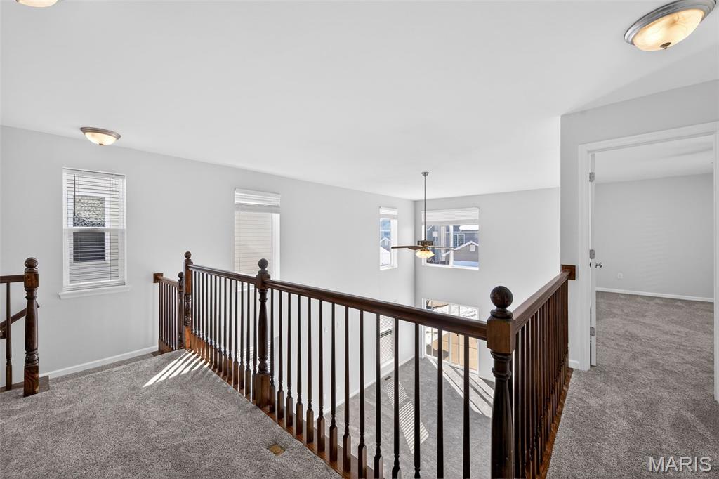 Welcome home! Step inside this freshly painted 3-bed, 2.5-bath home in the sought after Francis Howell school district, featuring brand-new carpet throughout. The bright, open main level welcomes you with soaring ceilings in the great room, creating an airy, inviting space that flows into the breakfast room and kitchen with all appliances included. A patio door off the living area leads to a private patio—perfect for relaxing or grilling. The main-floor primary suite offers a spacious bedroom, walk-in closet, and full bath. A convenient half bath and main-floor laundry complete the level. Upstairs, a versatile loft connects to two generous bedrooms and a full hall bath. The deep-pour lower level includes an egress window, rough-in bath, and abundant storage, ready for future finishing. With an attached 2-car garage and a prime Cottleville location near parks and dining, this one is a must-see. Showings begin 2/6!
