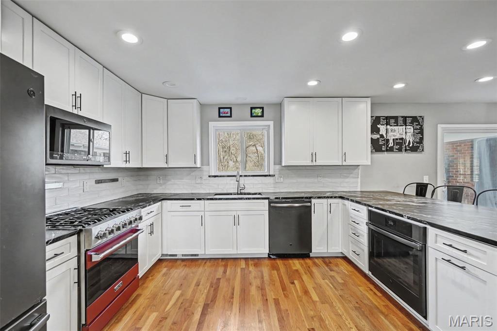 Renovated ranch in the highly desirable Parkway School District, this stunning residence blends timeless style with modern comfort. Completely gut renovated in 2019, the home offers four spacious bedrooms, three full bathrooms, and two half bathrooms, thoughtfully designed for both everyday living and effortless entertaining. Step inside to discover hardwood floors flowing throughout, creating a warm and cohesive feel. The chef’s kitchen serves as the heart of the home, featuring premium finishes, generous prep space, and seamless connection to the main living and dining areas. The partially finished lower level expands your options with flexible space for recreation, a home office, or fitness studio. Outside, enjoy a beautifully fenced yard and an impressive 900 sq/ft patio, ideal for gatherings, quiet evenings, or weekend celebrations. Major updates including a newer roof, HVAC, and whole home generator provide peace of mind and year-round comfort. With easy access to highways, top-rated schools, parks, and shopping, this location delivers unmatched convenience. A rare opportunity to own a move-in-ready, fully renovated ranch in one of the area’s most sought-after communities. Crafted with attention to detail and designed for today’s lifestyle, every space reflects quality, functionality, and refined comfort. Simply unpack, settle in, and start enjoying everything this exceptional home has to offer.