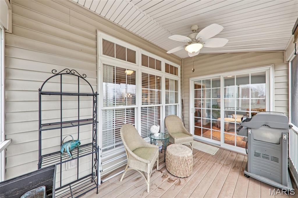 IMPROVED PRICE! Welcome to this end unit townhome in Cambury, a sought-after walkable community in the heart of Wildwood. This spacious home offers three levels of premier living. On the first floor, hardwood flooring is throughout the open floor plan with windows galore, a beautiful kitchen with a box bay window, spacious dining and living rooms, and a half bath. Check out the sunroom and screened-in deck too for added enjoyment. Take a look upstairs. The loft provides a great opportunity for a sun-filled home office, library, or whatever fits your lifestyle. The primary ensuite has a soaring vaulted ceiling, walk-in closet, and a private bathroom with a deluxe walk-in shower and a double bowl vanity. The second bedroom has a charming box bay window, oversized closet, and private full bath. Head to the lower level. Use this space for a rec room or great room. The electric fireplace adds coziness during the cooler seasons. You’ll also have a half-bath, utility room, and entry to the 2-stall garage. The best part of Cambury? The friendly neighborhood will make you feel right at home. You'll live a carefree lifestyle with more time to enjoy life. Your exterior maintenance is taken care of. No lawncare or snow removal except on your porch and sidewalk. So, sit back on your screened-in deck or your covered front porch, golf at one of the nearby courses, or walk or bike the trails. Walk to Town Center, the new Village Green, restaurants, the Y and St. Louis Community College Wildwood campus and so much more! Right out your front door at the end of Larksong is the Wildwood Greenway Trail. Bike or walk this 18-mile-long treasure. This community is also part of the award-winning Rockwood School District. All appliances remain with this home including the refrigerator, washer, and dryer. 2026 HOA fees Monthly per Unit Breakdown $60.00 Reserves $134.00 Insurance $73.00 Building Maintenance $70.00 Grounds Maintenance $46.00 Utilities and Trash $17.00 Administrative $400.00 MONTHLY FEE (one of the lowest HOA fees in St. Louis County)