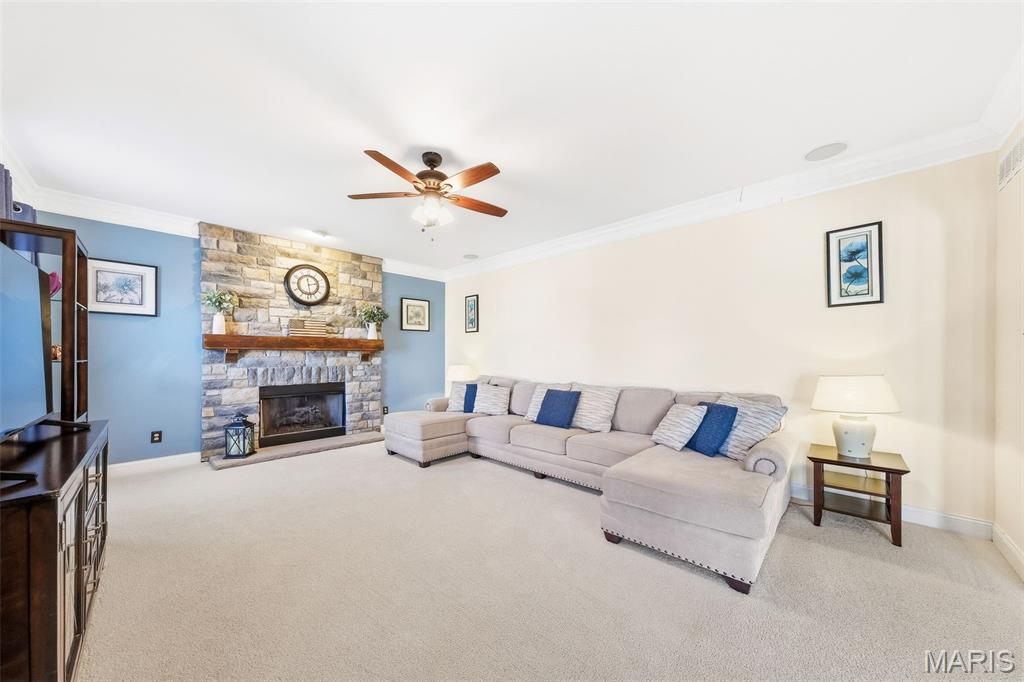 Stately and beautifully maintained, this Bainbridge home captures attention with timeless curb appeal, welcoming charm, and lush yet low-maintenance landscaping. From the moment you arrive, you’ll notice the pride of ownership and thoughtful updates throughout. Step inside to an open floor plan filled with natural light. At the heart of the home is a stunning gourmet kitchen featuring satin granite countertops, stainless steel appliances, and a spacious center island that flows seamlessly into the inviting family room—perfect for entertaining, holidays, or everyday living. The cozy fireplace anchors the family room, creating a warm and stylish gathering space for any occasion. Upstairs, retreat to the expansive 20x15 primary suite, a true private sanctuary complete with a spa-inspired bath and generous walk-in closet. Three additional bedrooms with beautiful wood flooring provide flexibility for family, guests, or dedicated office space, while a versatile loft area adds even more options for work or relaxation. The finished lower level expands your living space with room for recreation, media, fitness, or hobbies. Step outside to your private backyard oasis, ideal for summer barbecues, playtime, or relaxing evenings under the stars. Located in the highly sought-after Bainbridge neighborhood in Dardenne Prairie, residents enjoy access to a private community pool and a full calendar of neighborhood activities, top-rated schools, parks, shopping, and dining.