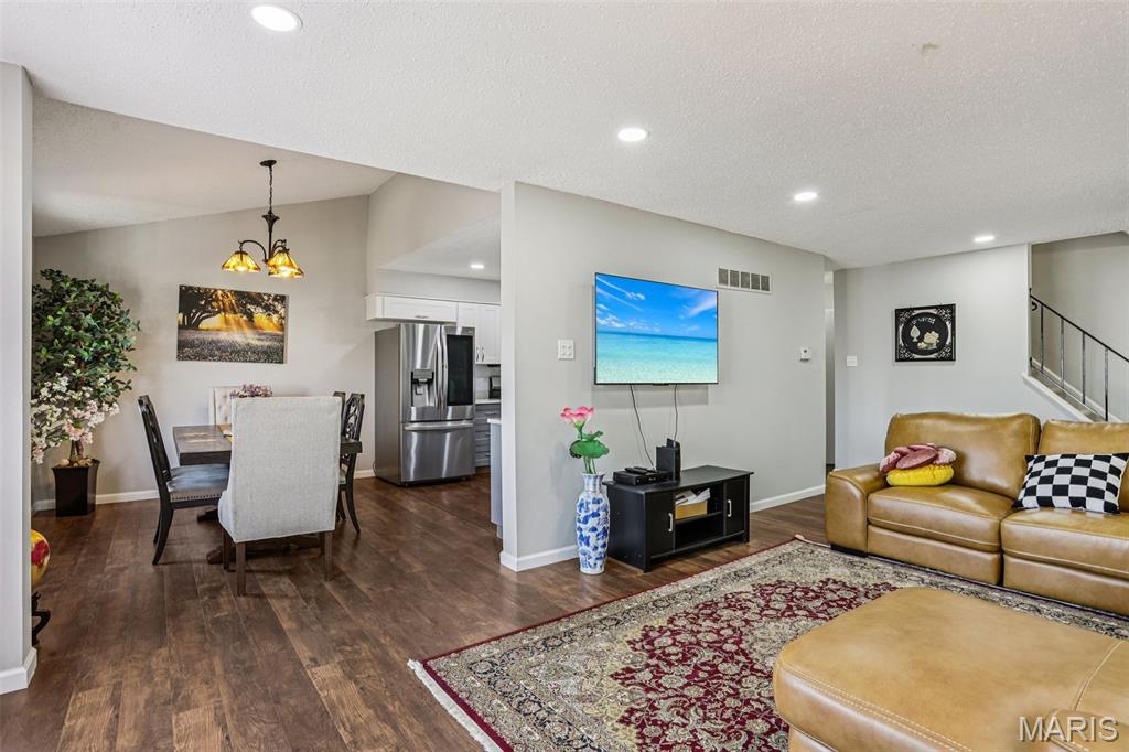 Welcome to this beautifully maintained end-unit townhome located in the award-winning Parkway West High School district.The inviting main level features a remodeled kitchen with custom-designed cabinetry, stainless steel appliances, and a gas stove. The dining room flows seamlessly into the spacious living room, complete with a cozy gas fireplace and access to the deck—perfect for relaxing or entertaining. Upstairs, you’ll find three generously sized bedrooms and two full bathrooms. The primary suite features two walk-in closets and a private bath, while the additional bedrooms offer large closets and abundant natural light. The partially finished walkout lower level opens to a patio and fenced yard, providing great additional living and outdoor space. An attached two-car garage adds convenience and extra storage. Enjoy being within walking distance to the shopping, dining, and everyday conveniences of Town and Country Crossing. With easy access to major highways, this home truly combines comfort, style, and unbeatable convenience.