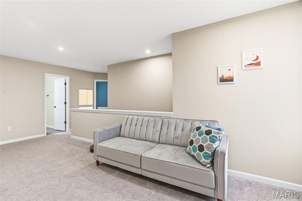 Welcome to this impeccably maintained, move-in-ready, 2-story, 2023-built Fischer Home offering 4 bedrooms, 2.5 baths, and an exceptional blend of modern comfort and functional design—loaded with upgrades! The charming covered front porch sets the tone as you step inside to 9’ ceilings and luxury vinyl plank flooring flowing throughout the main level. A versatile main-floor bedroom provides the perfect space for a home office, guest suite, or additional family room. The light-filled living area features a beautiful wall-mounted fireplace, creating a warm and inviting atmosphere for everyday living or entertaining. The open-concept layout seamlessly connects to the dining area and the upgraded kitchen, complete with a center island, 42” cabinetry with crown moulding, granite countertops, stainless steel appliances, and a walk-in pantry. From the dining area, step outside to enjoy the expanded concrete patio—ideal for gatherings, grilling, or relaxing evenings with family and friends. Upstairs, the thoughtfully designed primary suite offers a double-sink bath and a generous walk-in closet. Two additional bedrooms each feature their own walk-in closets. A versatile loft area offers endless possibilities—playroom, second office, media space, or cozy reading nook. Convenient second-floor laundry with a window and utility sink adds everyday ease. The unfinished basement is ready for your personal touch, featuring a rough-in for a future bath, egress window, sump pump, and water softener system that is already installed for you. The Pinewoods Estates community also offers a beautiful pond with trails, picnic areas, and a playground. Located just minutes from Wentzville Parkway shopping, dining, and everyday conveniences, with quick access to Hwy 70 and Hwy 64 for easy commuting. Don’t miss this rare opportunity to own this beautifully upgraded home, where functional finishes and floorplan meet your desired everyday lifestyle. Schedule your showing today!