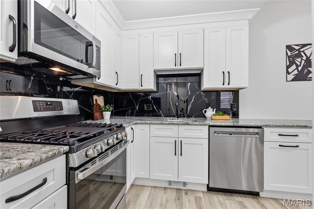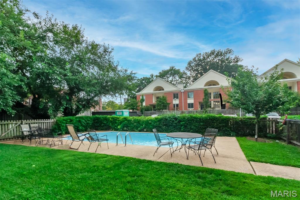 327 N Boyle Ave, Cornerstone Condominium: Completely renovated, move-in ready 2 bed, 1.5 bath Central West End corner/end unit with extra privacy, gated entry, assigned gated parking space #2, private pool, and greenspace in a secure, highly walkable community. Full renovation delivers a modern open-concept layout with 9ft ceilings throughout, luxury plank flooring, recessed lighting, custom fixtures, and an updated fireplace with custom surround and mantle. The kitchen is a showstopper with fully extended Shaker cabinetry with soft-close doors/drawers, granite countertops, stainless appliances, a gas stove, built-in soap dispenser, and a pantry. Seller agrees to purchase and install a NEW refrigerator! Entertain easily with the oversized counter plus a custom buffet featuring a built-in wine rack and beverage fridge, perfect for serving buffet-style and keeping drinks separate from food. A convenient main-floor powder room completes the space. Custom window treatments throughout add the finishing touch. Upstairs features two spacious bedrooms with upgraded carpet and pad, 6-panel doors, abundant closet space, and a 2nd-floor skylight that fills the home with warm natural morning light. The primary suite offers a custom vanity with an extra sink and LCD mirror, and the updated full bath includes granite-top vanities, a glass tub door, upgraded fixtures, and stylish lighting. Major systems have been updated too, including HVAC and water heater (2024). The clean, unfinished lower level provides laundry hookups, exceptional storage, and potential flex space for a home gym, home office, hobby area, or bonus room. Gated overnight guest parking is available, with additional gated parking that can be rented. Location is everything: vibrant Central West End living right outside your door with walkable Whole Foods, cafes, restaurants, and Starbucks, plus Boyle-Laclede Community Garden, Forest Park, BJC and Barnes-Jewish Hospital, Washington University (WashU Medical Campus), Cortex Innovation Community, St. Louis University (SLU), City Foundry, and The Grove all nearby. Quick access to I-64/US-40, Clayton, and Downtown St. Louis. Stylish, low-maintenance city living at its finest. Schedule your private showing today!