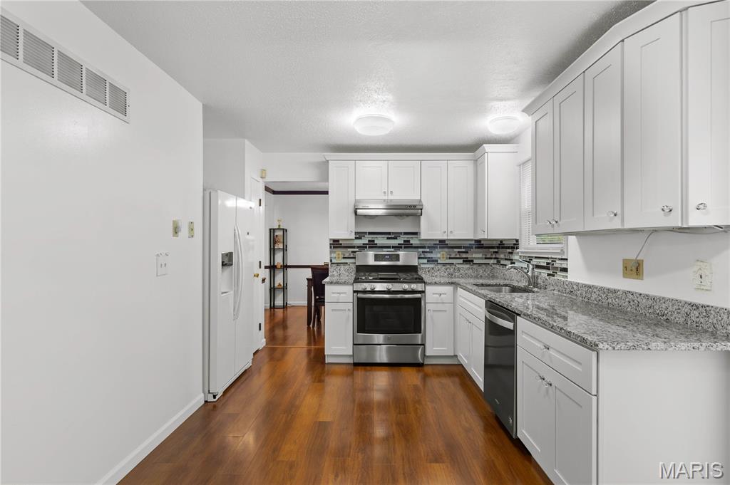 Nestled on a quiet cul-de-sac, this beautifully refreshed and impeccably maintained residence sits on a spacious, private lot, offering an exceptional balance of peace and convenience. Freshly painted inside, the home features new siding, new windows, new flooring, and a stunning chef’s kitchen appointed with 42" cabinetry, elegant crown molding, and premium stainless steel appliances. Step inside to discover a light-filled interior where timeless design meets modern comfort. Generously sized rooms, refined finishes, and a seamless layout create an inviting atmosphere perfect for both everyday living and elegant entertaining. Outdoors, the expansive half-acre lot is a true retreat, surrounded by mature landscaping that enhances both beauty and privacy. The backyard offers endless possibilities for a garden, patio, or play area. The lower level includes a bathroom rough-in, providing the opportunity to customize additional living space to suit your needs. Located in the highly desirable Pattonville School District and just minutes from premier shopping, dining, parks, and major highways, this move-in-ready home combines quality, comfort, and convenience in perfect harmony. Experience the difference and schedule your private showing today.