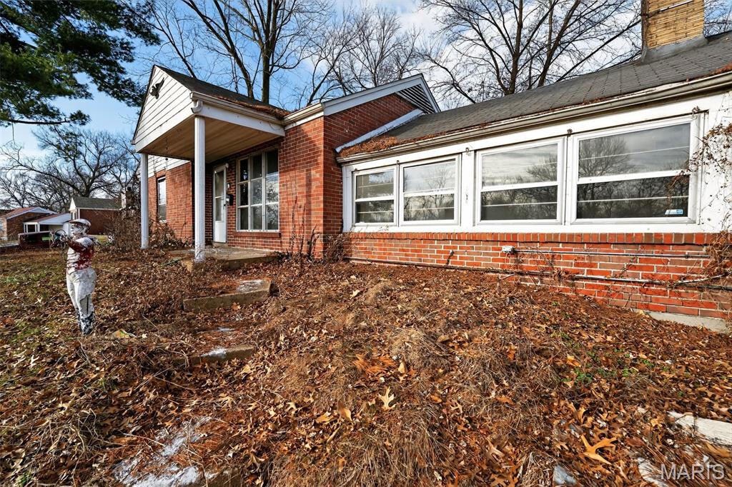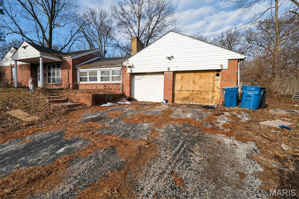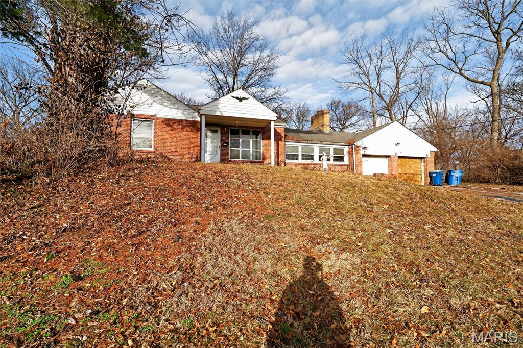 Spacious brick ranch set on a large, tree-lined lot with mature shade trees and plenty of outdoor space. The home features classic brick construction, a covered front entry, and an extended driveway leading to a detached garage for additional parking or storage. A wide front window brings natural light into the main living area, while the covered side patio provides a sheltered outdoor space for relaxing or entertaining. The expansive yard offers ample room for outdoor activities, gardening, or future landscaping possibilities. With its generous lot size and single-level layout, this property presents a great opportunity to create a comfortable home with room to personalize.