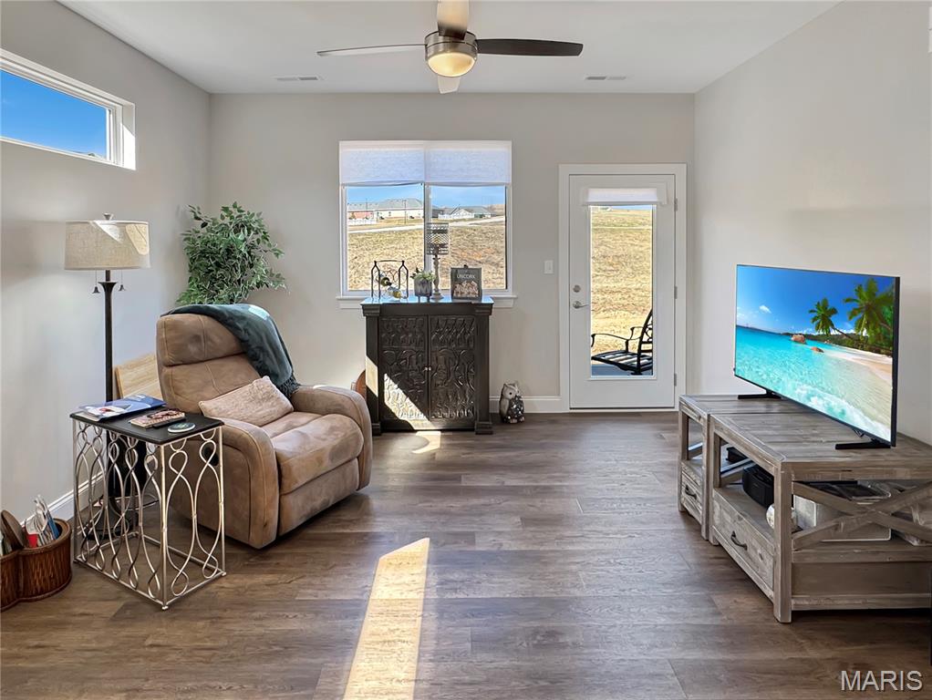 Come see this gorgeous, move-in-ready villa in a fantastic location! Designed for easy living, the zero-entry layout offers true step-free access—simply walk right in and feel at home. Inside, you’ll love the 9-foot ceilings, stylish light fixtures, and can lighting that create a bright, open feel. The living room features two daylight windows, bringing in additional natural light. The kitchen is both beautiful and functional with quartz countertops, under-cabinet lighting, stainless steel stove and dishwasher, pull-out shelving, can lighting, and a lighted pantry—perfect for everyday cooking and entertaining. The entry foyer opens to the spacious open-concept living area. A second bedroom is conveniently located off the entry, ideal for guests or a home office. The hallway leads to the zero-entry one-car garage and includes a closet for a stackable washer and dryer, along with a full guest bath (raised vanity and tall toilet).The primary suite offers a large walk-in closet and a private ensuite bath featuring a generous raised vanity, raised toilet, and a large glass-door shower. One car garage with 9 ft door and a key pad entry. Whether you’re looking for full-time living or a seasonal retreat, this villa is a perfect fit. Exterior maintenance is handled by the association for just $160 per month, giving you more time to relax and enjoy your home and community Washington Mo. Seller coving $6600 closing costs credit at closing. buyer receives the remaining builder's warranty.