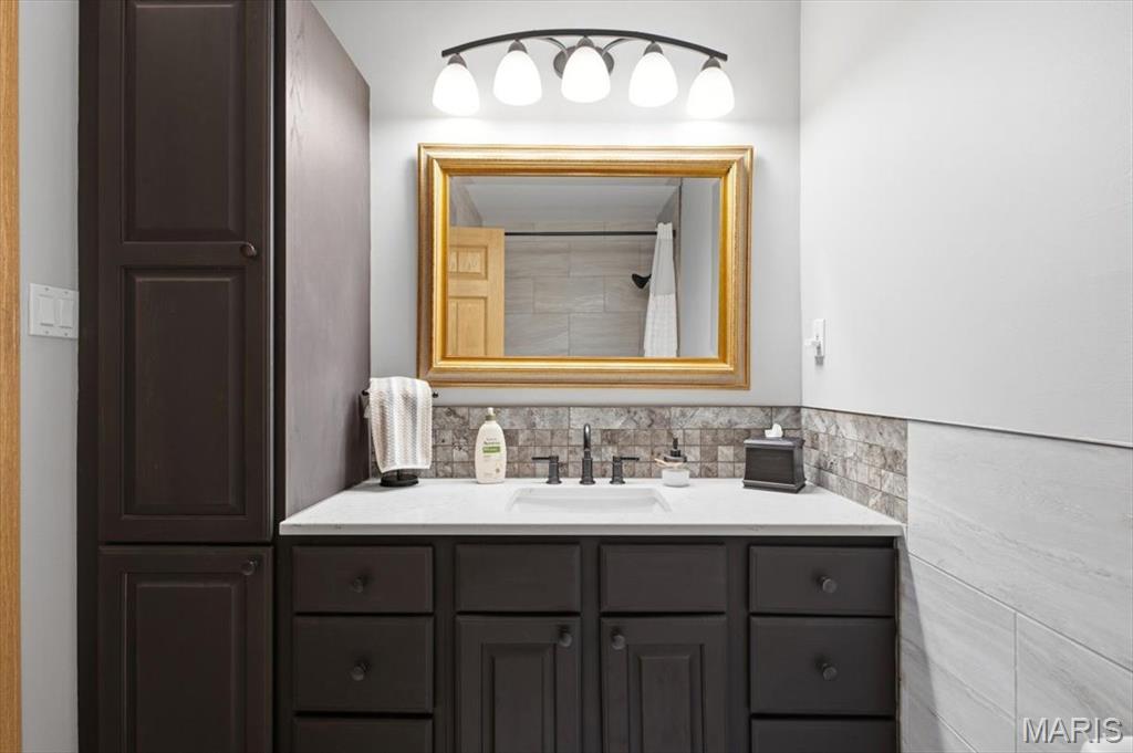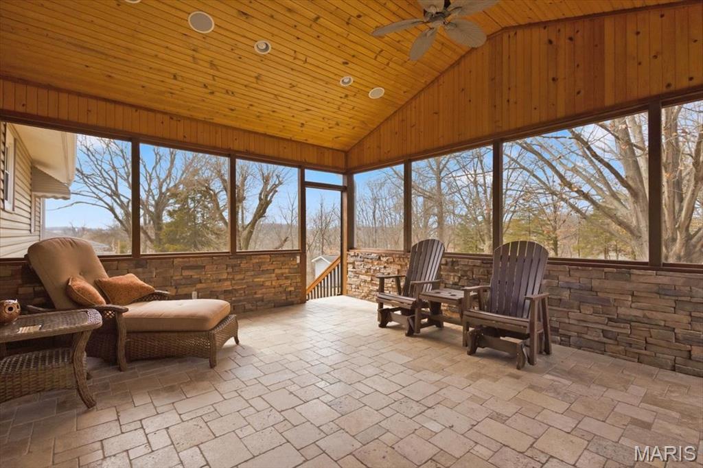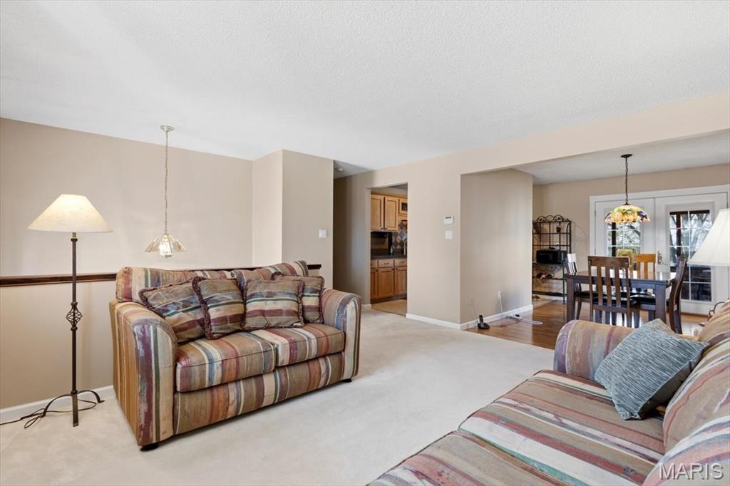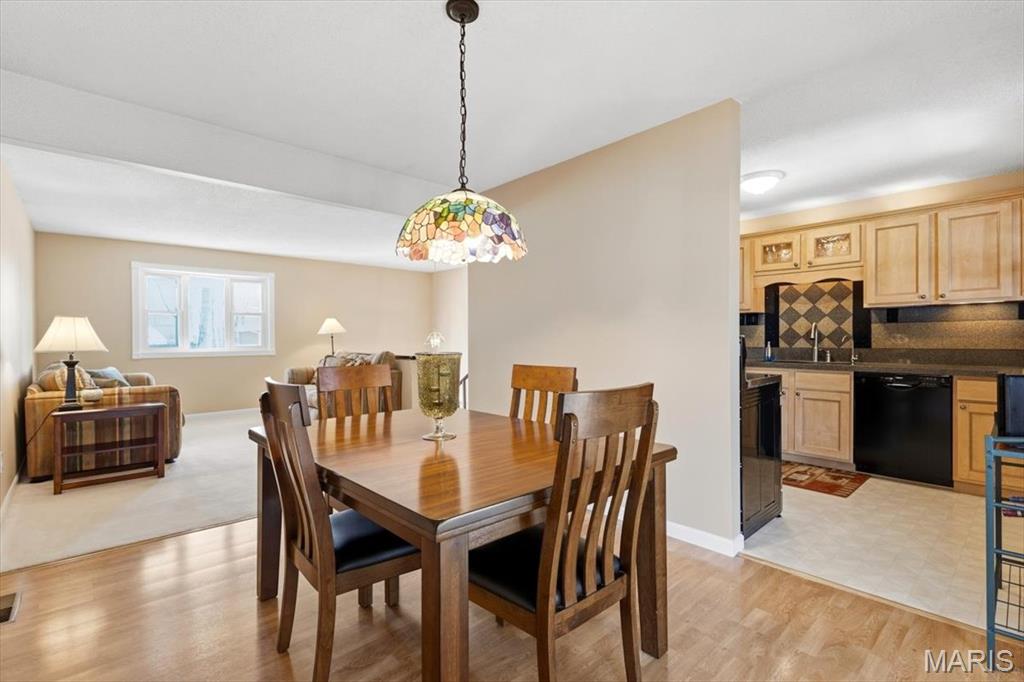 Meticulously maintained multi level home with 4+ garage/workshop space! Beautiful curb appeal with large front pillars and low maintenance landscaping. Walk inside to neutral colors, natural light & numerous updates. Living room is flanked by a formal dining area with solid wood flooring & chandelier. French doors lead you out to a spectacular 3-season room with vaulted ceilings, full stone accent wall & tile flooring. Kitchen is improved with solid surface counters, maple finish cabinets, custom backsplash, SS appliances & smooth top electric range/oven. Main floor primary bedroom suite includes a fully updated bath with custom vanity and custom shower enclosure. 2 additional bedrooms on the main level share a second recently remodeled bathroom. Fully finished lower level provides ample space with game/rec area, 1/2 bath, wet bar, family room with built in shelving & gas fireplace, recessed lighting, laundry area, storage & walk out access. Out back is a level yard, large concrete patio and oversized, detached garage/workshop that can accommodate 4+ vehicles plus an additional under a carport, home business, boats, lawn equipment etc. NO HOA, Rockwood Schools & walking distance to 5th street with shops & restaurants.