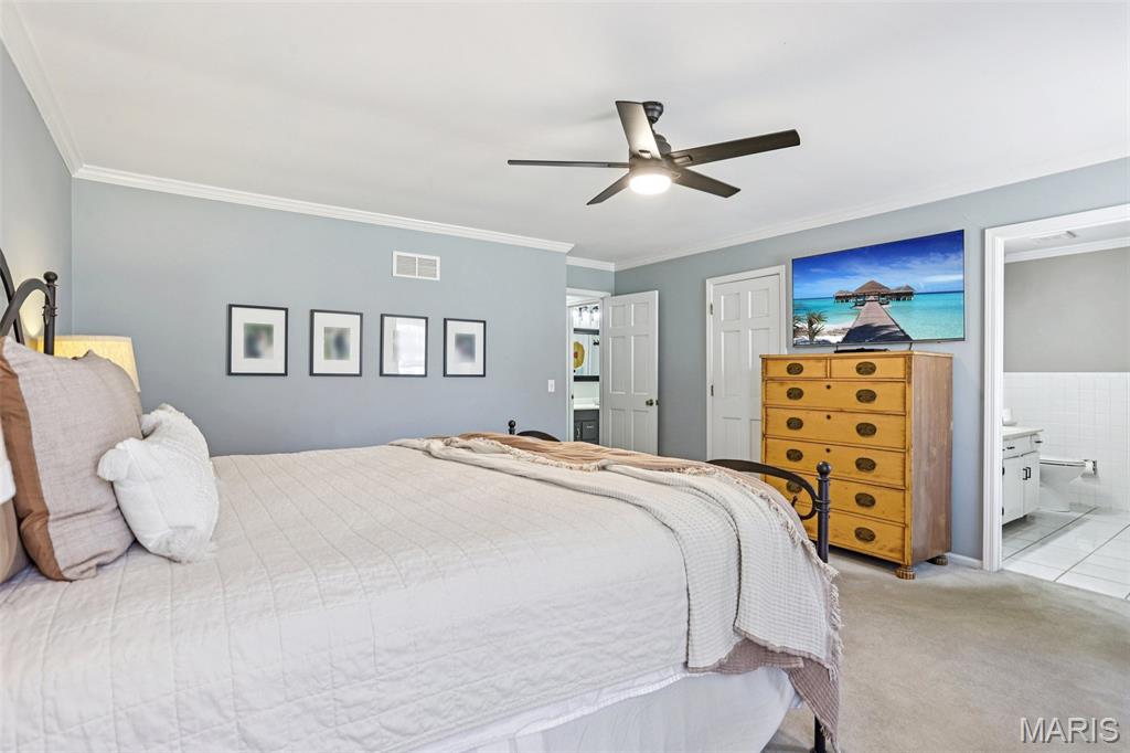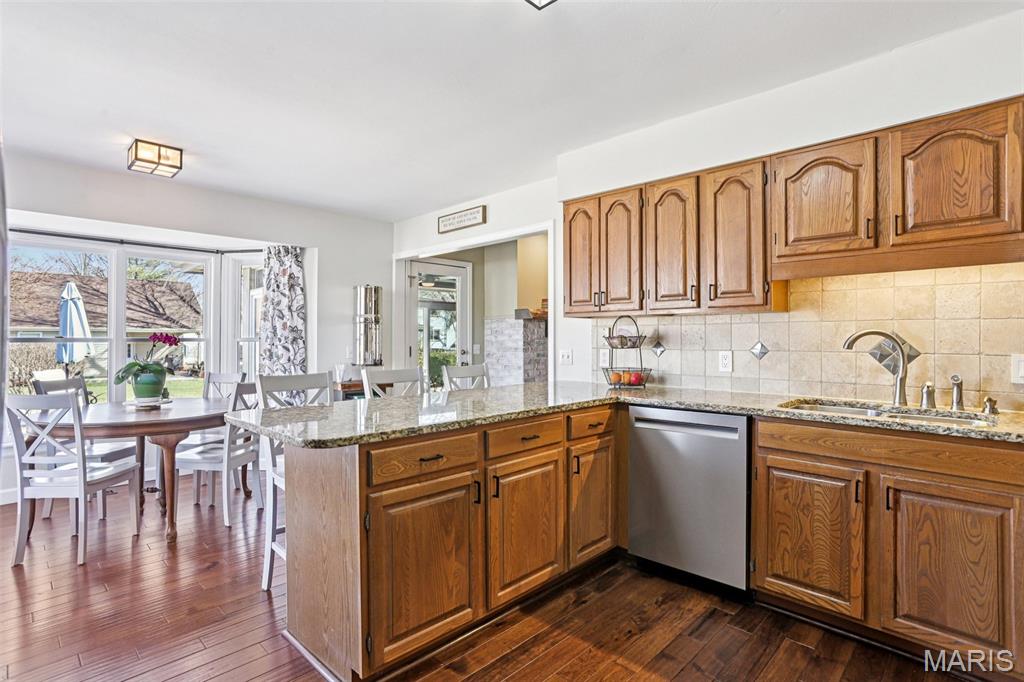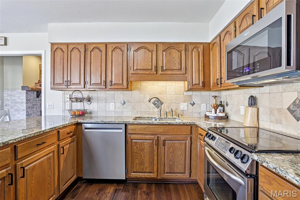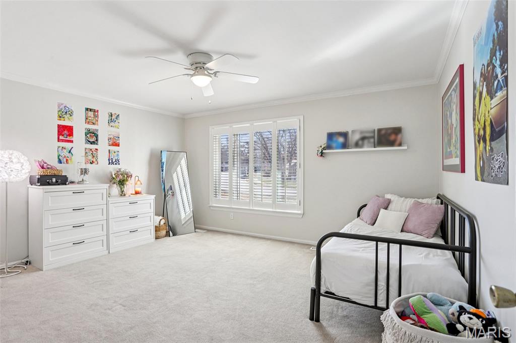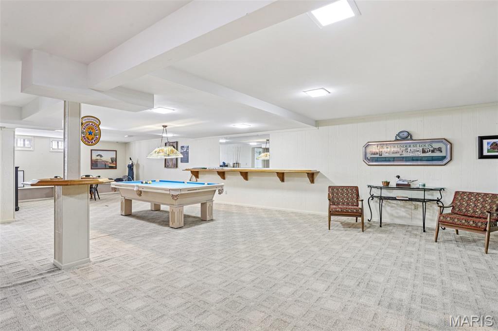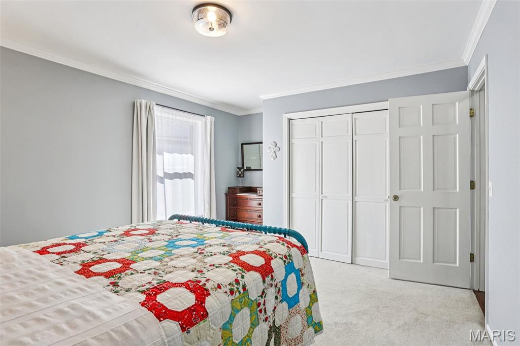OPEN HOUSE 3/7 11-2pm. Spacious 4-bedroom, 3 bath full-brick ranch in established St Charles neighborhood offering over 4,000 sq ft of finished living space and true main-floor living. The main level features 3 bedrooms, 2 full baths, hardwood flooring, crown molding, and multiple living areas including a vaulted family room with exposed beam and wood-burning fireplace. The kitchen offers granite countertops, stainless appliances, tile backsplash, abundant cabinetry, and opens to a bright breakfast bay, with formal living and dining rooms providing flexible entertaining space. The finished lower level significantly expands the home with a large recreation area, full brick fireplace with built-ins, dedicated media/lounge space, 4th bedroom, full bath, additional flex room, and generous storage. A spacious sunroom overlooks the deck and flat backyard with mature trees, creating ideal indoor-outdoor flow. Located minutes from Highway 370, shopping, dining, Boeing, and Historic Main Street St. Charles, this home combines square footage, classic construction, and a prime location in one of St. Charles’ established neighborhoods.