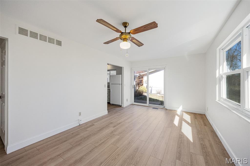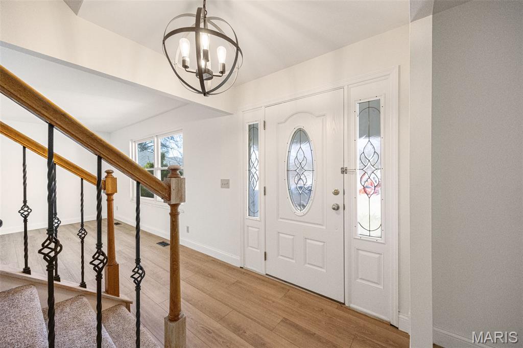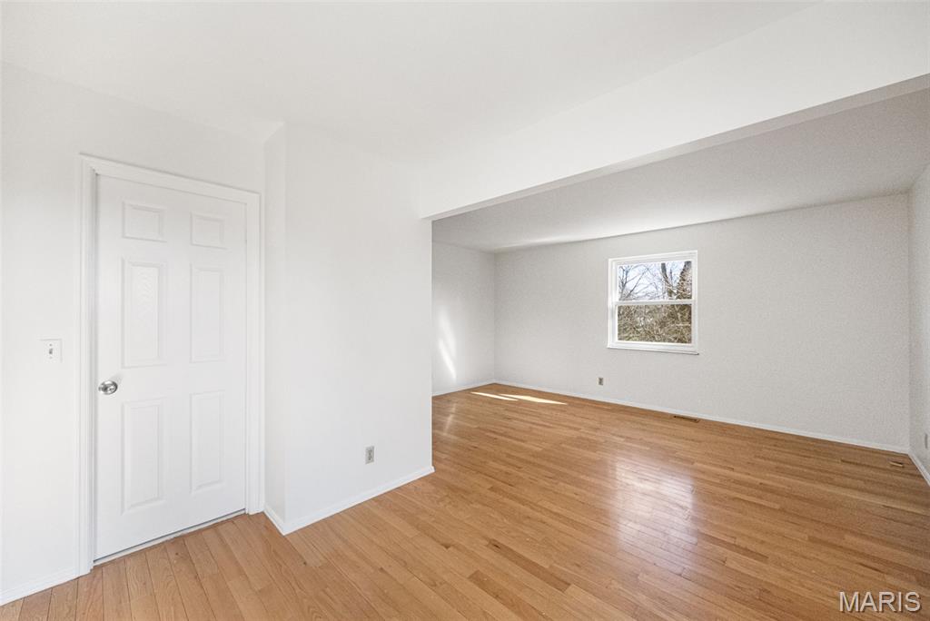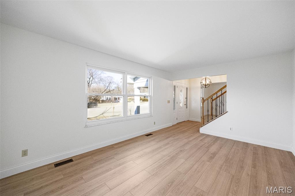 Delightful 1.5 story home in the heart of Maryland Heights, nestled in a cul-de-sac. This home features three spacious bedrooms and two bathrooms. You will find two bedrooms on the upper level and the primary bedroom is conveniently located on the main floor. To the right of the front entry way is the living room and to left is the great room both offering flexible spaces for relaxation and entertainment. Kitchen flows into a separate dining room, perfect for family gatherings. The unfinished walk-out basement presents an exciting opportunity for customization, allowing you to design your ideal space. Recent upgrades include luxury vinyl plank flooring throughout most of main level along with new carpet upstairs, complemented by freshly painted walls and baseboards on main and upper levels of the home. First showings begin at 10:00am on Saturday, February 21st. Professional photos will also be uploaded Saturday morning.