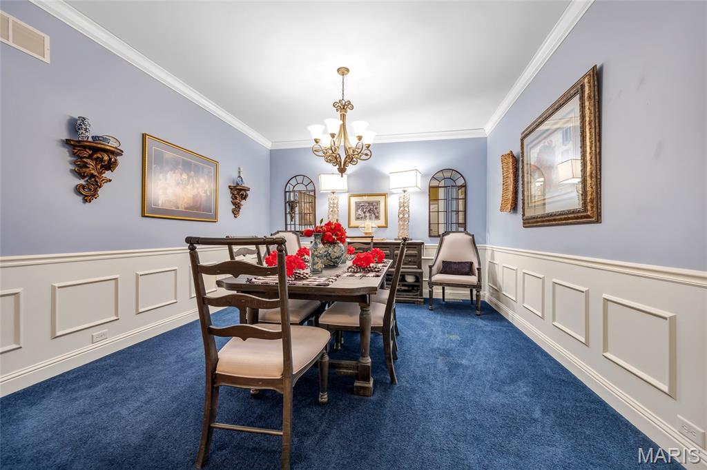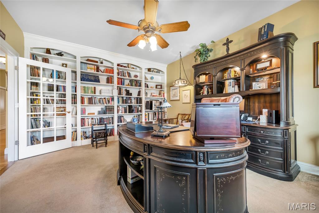 Beautifully maintained 2-bedroom villa with private office (could be 3rd bedroom with an added closet) in desirable St. Charles. This spacious home offers 2 full baths and 1 half bath with an open floor plan ideal for comfortable living and entertaining. The vaulted great room features a floor-to-ceiling stone gas fireplace and large windows for abundant natural light. The kitchen offers 42” cabinets with crown molding, granite countertops, stainless steel appliances, walk-in pantry, built-in desk, and a large center island. Hardwood flooring, recessed lighting, and a breakfast room that leads to the screened-in porch. The primary suite includes a tray ceiling, remote-control blinds, double sinks, separate shower and jacuzzi tub, and walk-in closet. The office features custom built-ins and French doors. Formal dining room includes wainscoting and crown molding. The finished walk-out lower level with sliding glass door offers a second gas fireplace, wet bar, spacious family room, second bedroom, full bath, and large storage room. Recent updates include new triple-pane windows (2025) and water heater. Additional features include permanent backup generator system and a safe!
