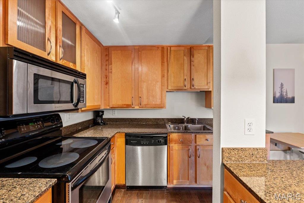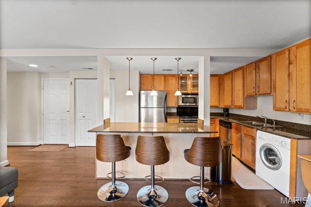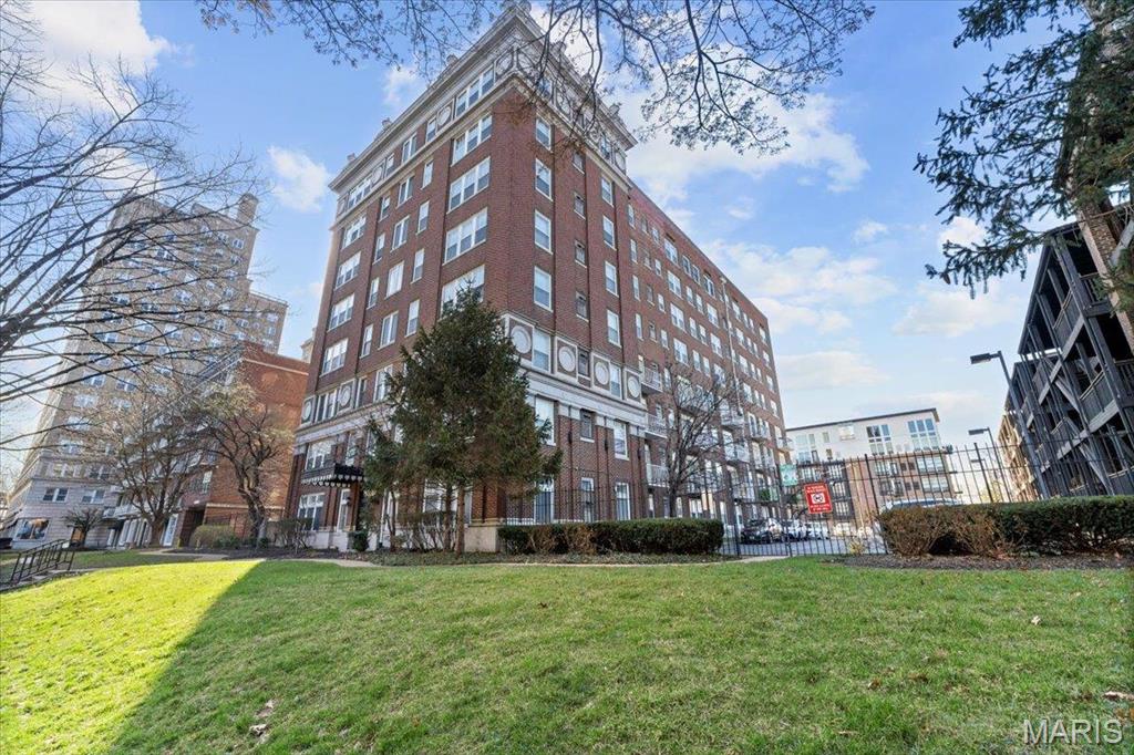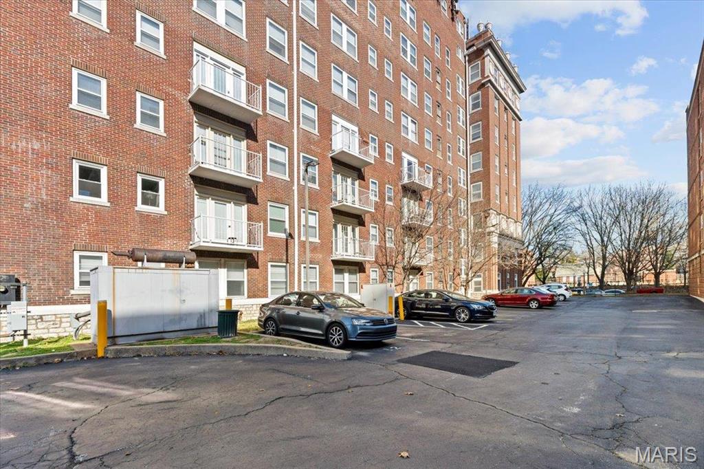 This is a one bedroom one full bath condo with an open floor plan and a balcony to enjoy sitting on with a cup of coffee or an evening beverage. The kitchen has a new refrigerator 6/1/2025, microwave, new electric range 5/31/2025, disposal, breakfast bar and combination washer/dryer. Across from the elevator is a full size washer and dryer for residents to use. The full bathroom has a tub/shower, single sink and toilet. The homeowner has furnished the unit for out of town family use and it is included. If you do not need, they will remove it. The building is secured with codes and keys to the front and back doors. The condo comes with a gated surface parking space, #7 on the east side of the building. There are coffee shops and a restaurant in a block or two with Forest Park very close by to enjoy the culture, walks, riding bakes, basketball and pickle ball courts. With in walking distance to Washington University or WU/BJC Medical campus. The building and the condo are kept clean and well managed. Location: City, Upper level. Rentals in the building must be for 1 year. No short term rentals. There was minor building damage from the May 2025 tornado which has been repaired. There are currently no open insurance claims. HSA Home Warranty is included for the buyer.