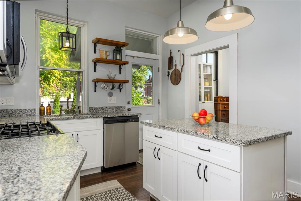 You will not find a home in St. Louis at this price for this amount of space and character. Beautifully updated and wonderful original features make this 5 bedroom, 2.5 bath historical home a treasure. You will see immediately as you pull up to this 3-story brick home it has all the qualities of historic St. Louis architecture. A long walkway will lead you to the covered front porch that has room for sitting out on a warm summer day and drinking a tall glass of lemonade. Through the front door you will be awed by the entry way that will lead you up to the 2nd and 3rd floors or make a right turn into the living room with it's large front window that gives off an abundance of natural light. Have family and friend gatherings in your dining room with the original pocket doors that separate the dining and living room. The white cabinets in the kitchen with its stainless steel appliances leads to a pantry room and the half bath. Upstairs on the second floor there is a primary suite with a gorgeous updated bathroom, 2 additional bedrooms, full bath and the convenience of 2nd floor laundry. The third floor has 2 additional bedrooms/loft area. Add your vision for the flooring and paint colors and it is ready to go. Third floor also has zoned HVAC. Have you envisioned a yard to entertain, large enough for a kids playground, outdoor games, fire pit nights, large family gatherings? This is the yard to do all these things!!! Plenty of room to add a garage someday. St. Vincent Greenway is adjacent to the home. Hop on your bike and ride one mile to Forest Park and to the Debaliviere Metro stop. Passed Occupancy Permit.