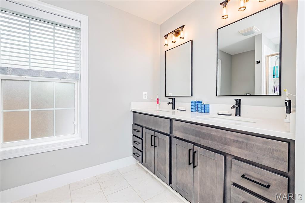 Welcome to this stunning recently built (2023) 4-bedroom, 2.5-bath home in the heart of Richmond Heights—where modern comfort meets everyday convenience. Step inside to a bright, open floorplan designed for effortless living and entertaining. Luxury vinyl plank flooring flows throughout the main level, complementing the home’s clean lines and pristine, move-in ready condition. The spacious living and dining areas seamlessly connect to a beautifully appointed kitchen featuring newer stainless steel appliances, an impressive walk-in pantry, and abundant cabinetry—perfect for both daily living and hosting gatherings. Upstairs, you’ll love the thoughtfully designed layout, including four generously sized bedrooms and a convenient second-level laundry room for easy access. Zoned heating and cooling provide personalized comfort throughout the home year-round, while window coverings already installed add both style and privacy. Step outside to enjoy a large, level backyard with an inground sprinkler system throughout the front and back.—ideal for entertaining, play, gardening, or simply relaxing at the end of the day. Carriage garage door that opens to a spacious tandem garage with basement entry. Plenty of room for storage. Located in the highly regarded Maplewood Richmond Heights School District, this home offers the perfect blend of newer construction, modern finishes, and a prime location close to shopping, dining, parks, and major highways. This is the one you’ve been waiting for—schedule your private showing today.
