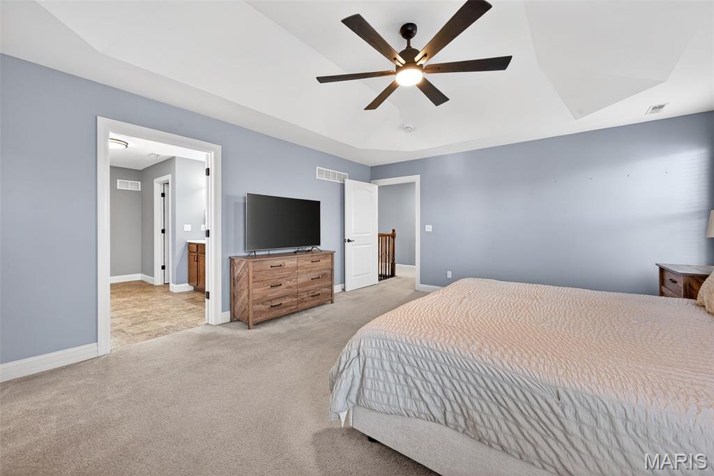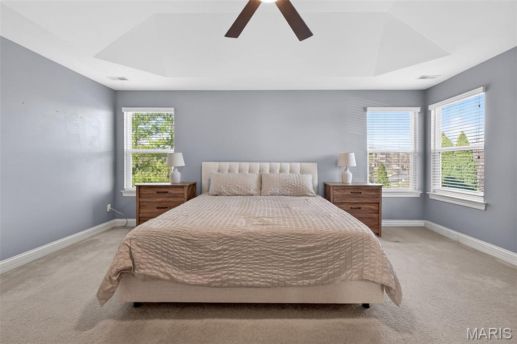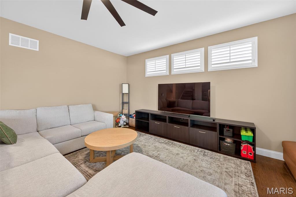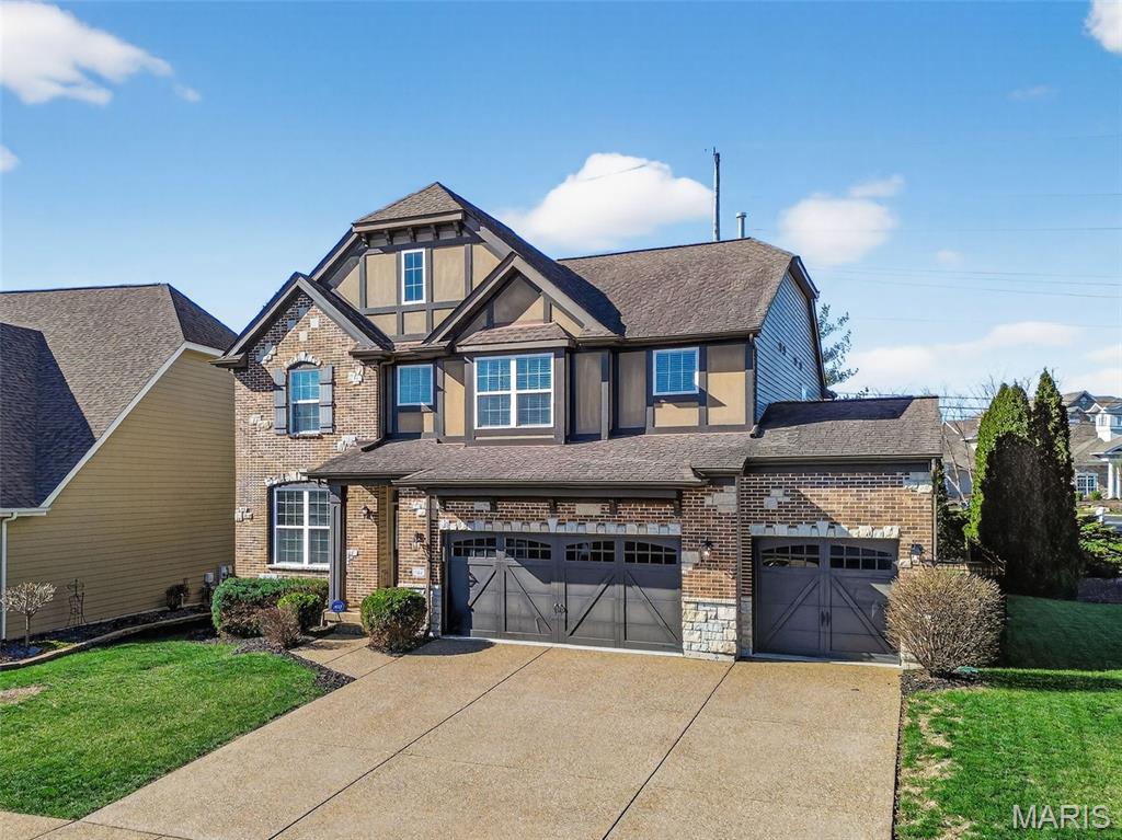 "HOME is the nicest word there is." This 3,300 sq ft, 4-bedroom, 3.5-bath home offers a bright, open layout, thoughtful upgrades, and room to grow—inside and out. Curb appeal starts with the landscaped yard on a corner lot. Home features like 9’ ceilings, hardwood floors, tray ceilings, French doors, plantation shutters, and carriage-style garage doors. The main level includes a great room with a gas fireplace, dining room, office, and a large eat-in kitchen with a center island/breakfast bar, granite countertops, and stainless steel appliances. Upstairs, you’ll find a spacious primary suite with a luxury bath and a 16’x9’ walk-in closet with a window, plus three additional bedrooms (all with walk-in closets). Two full baths include one en suite, along with a bonus/family room and convenient second-floor laundry. The lower level offers approx. 1,600 sq ft of unfinished space with an egress window and bath rough-in—ideal for future finishings. New Roof to be placed prior to closing. Convenient location near the Katy Trail, Hwy 364, shopping, and restaurants.