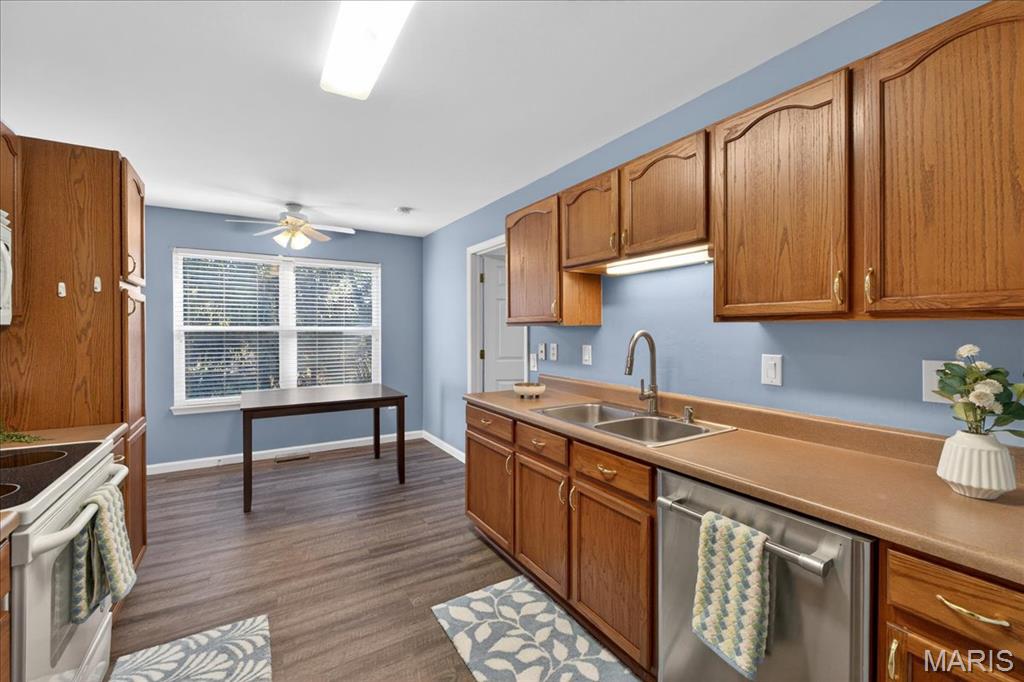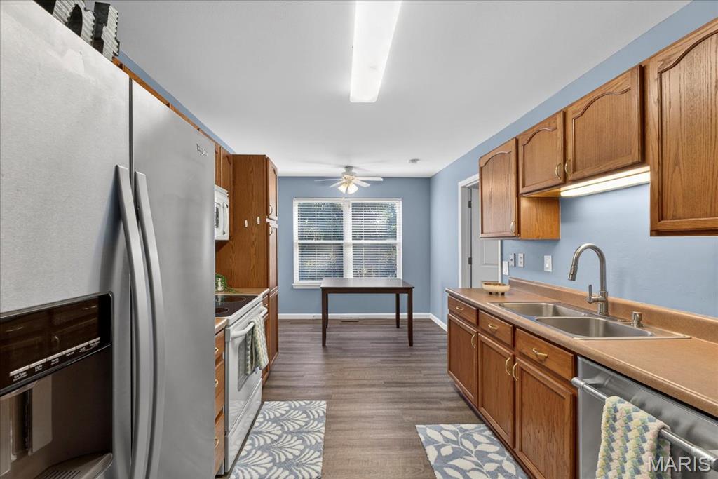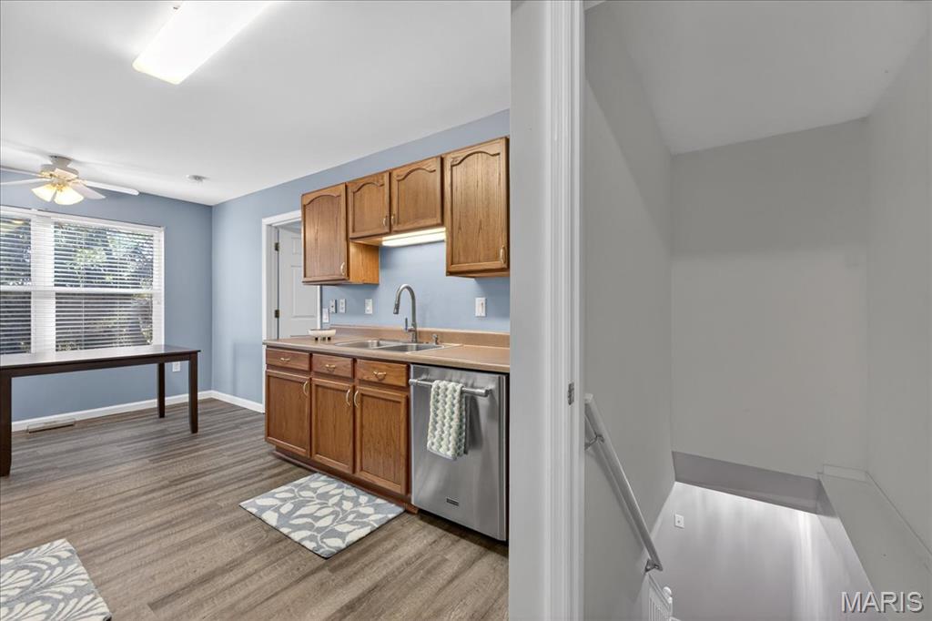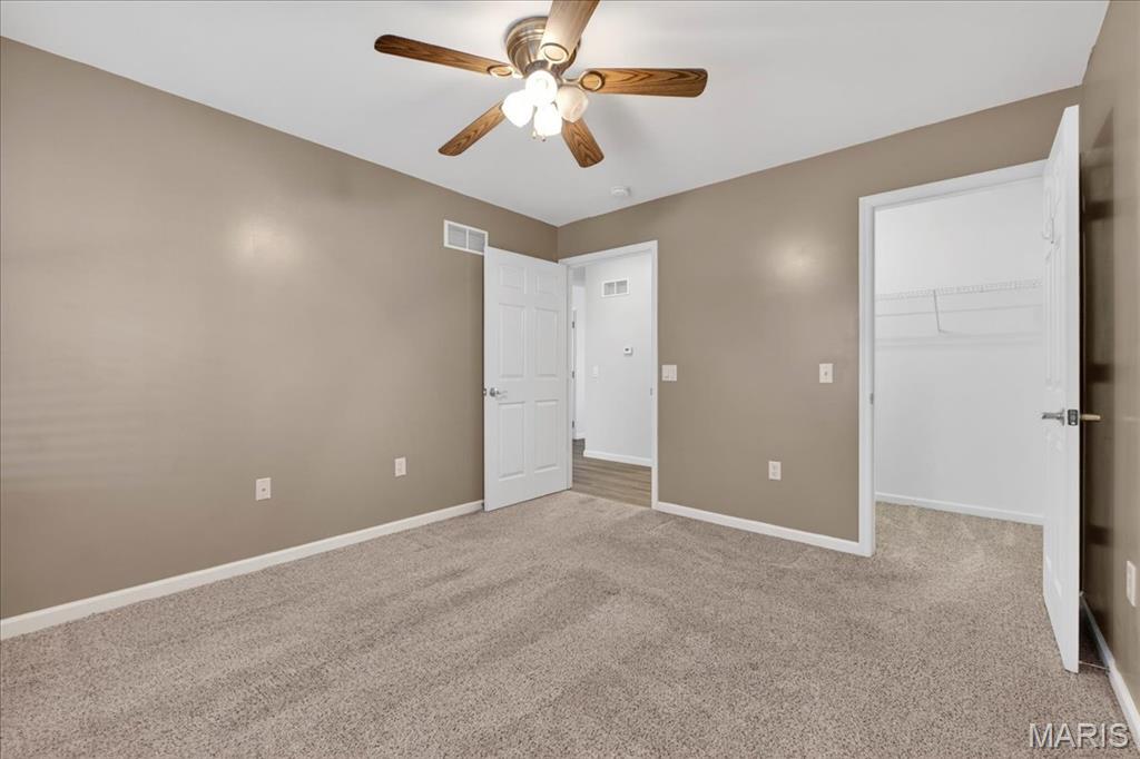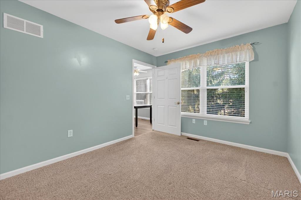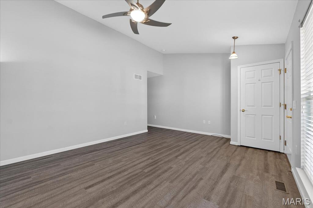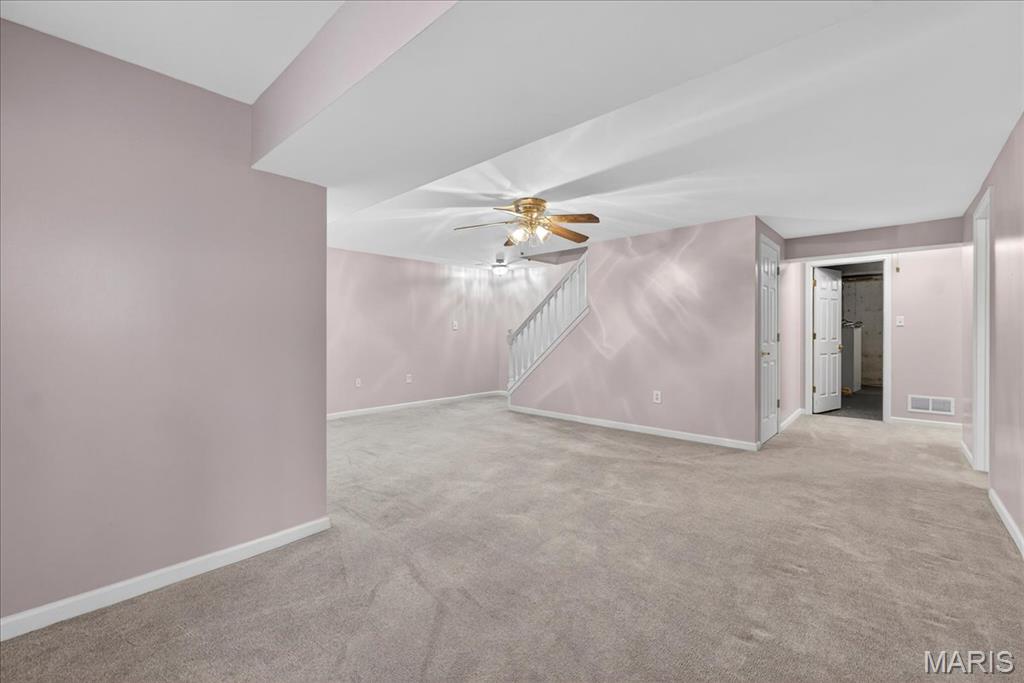 Welcome home to this beautifully maintained villa in a desirable 55+ community! Offering 2 bedrooms and 2 full baths with 1,562 square feet living space, this home features a finished walk-out lower level complete with an additional sleeping area, spacious recreation room, and full bath—perfect for guests or extended living. The open floor plan is highlighted by a vaulted ceiling in the living room, creating a bright and airy feel. The kitchen opens to a large covered deck with steps leading to the backyard and peaceful tree-lined views. Both bedrooms include walk-in closets and ceiling fans, and the convenience of main floor laundry adds to the easy-living design. Additional features include a newer HVAC system, water heater, and roof for added peace of mind, plus an attached one-car garage. Ideally located just off Hwy 40 and Pitman in Wentzville, with quick access to shopping, dining, and everyday amenities. Don’t miss this opportunity for low-maintenance living in a fantastic location!