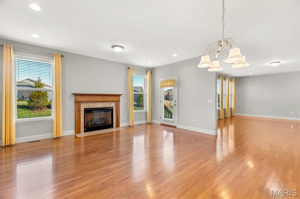Discover an incredible opportunity in the prestigious Montrachet Estates. Conveniently located off Hwy K, this 10-year-old ranch offers 3,612 square feet of meticulously finished living space, featuring 3 bedrooms and 2.5 bathrooms, finished Lower Level with a sleeping area. From the moment you arrive, the professional landscaping and manicured curb appeal—complete with an irrigation system—set the tone for the quality within. The interior boasts an inviting, open-concept floor plan designed for both grand entertaining and quiet privacy. At the heart of the home, the Great Room serves as a stunning focal point, anchored by a stacked ledgestone gas fireplace and a spectacular five-window wall that floods the space with natural light. Culinary enthusiasts will gravitate toward the gourmet chef’s kitchen, outfitted with 42” custom soft-close cabinetry, a premium Wolf gas range, granite countertops, and a spacious walk-in pantry. The primary suite is a true sanctuary, thoughtfully positioned for maximum privacy. It features a spa-inspired bath with a corner soaking tub, dual vanities, a separate shower, and a custom-designed walk-in closet. The partially finished lower level, boasting 9-foot ceilings, provides a versatile bonus room and ample storage. Complete with a three-car garage and high-end finishes throughout, this home truly has it all.