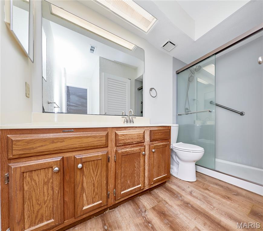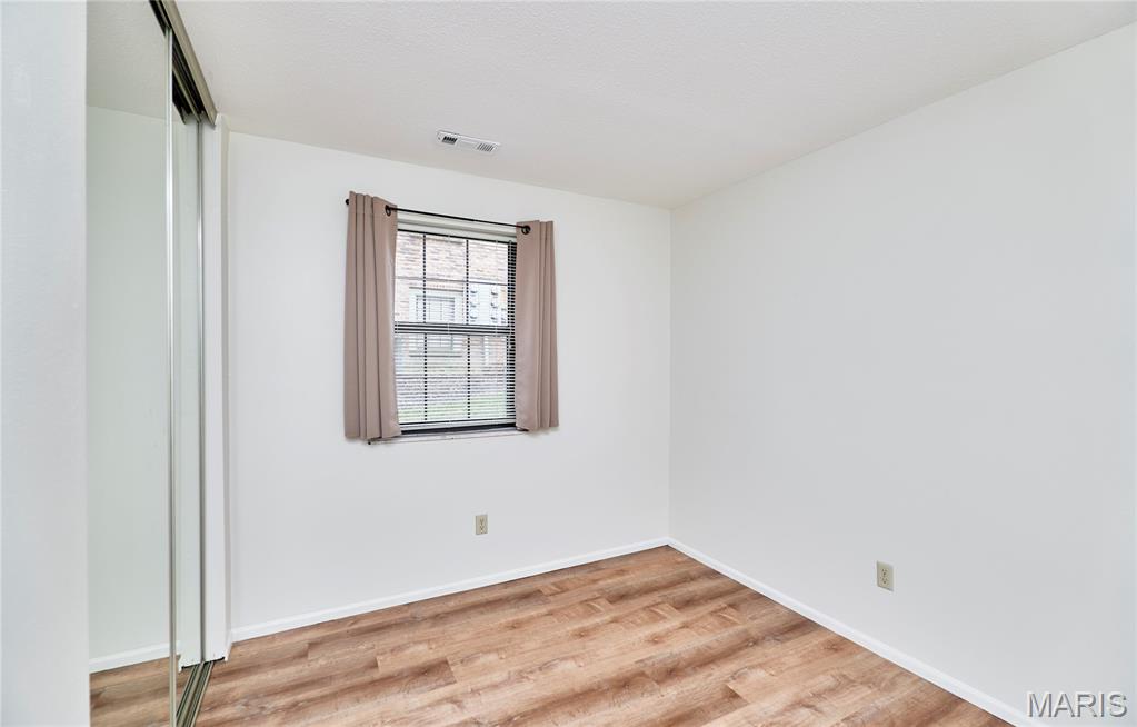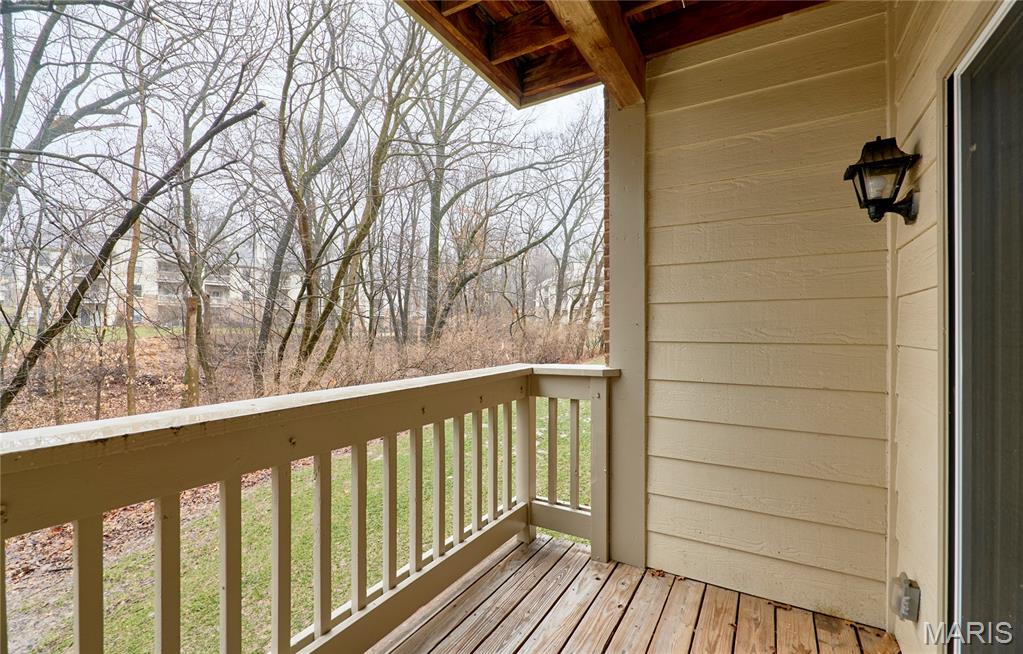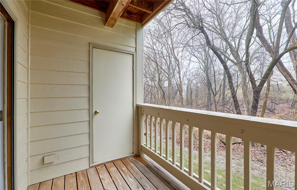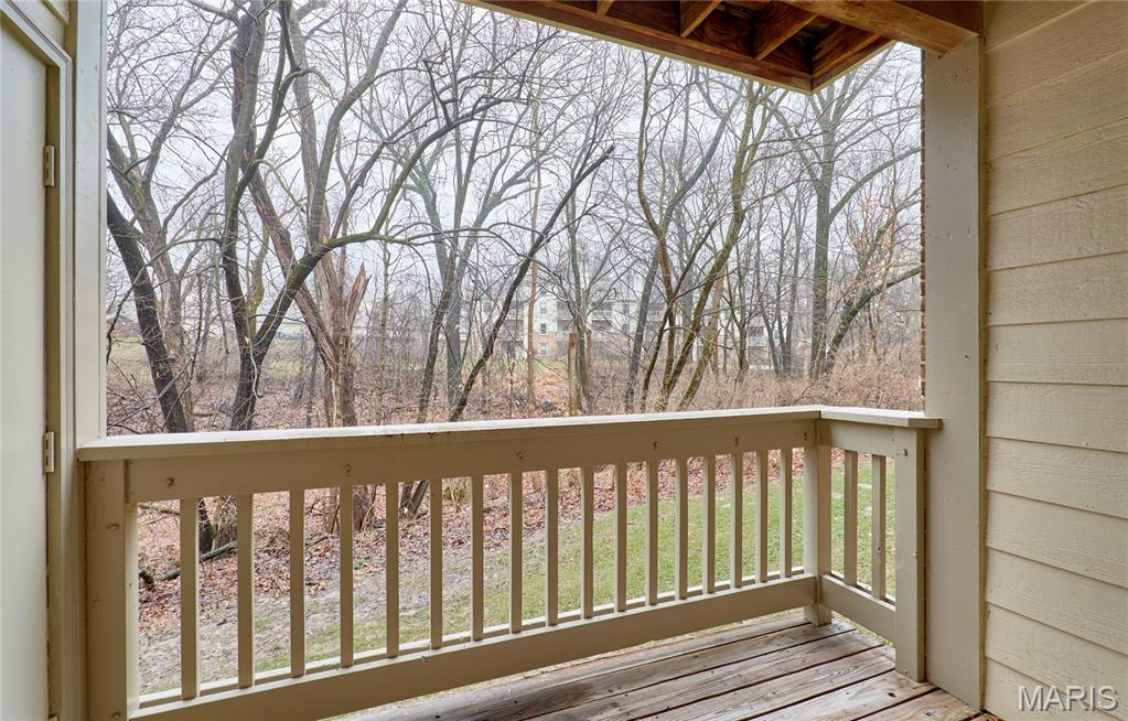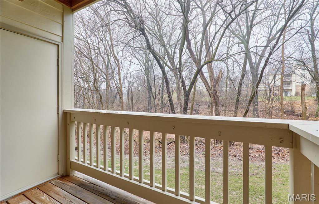 Lovely, lower level condo that backs to the woods! Open floor plan! Many luxury updates: Main shower-2024, Furnace, air conditioner, dishwasher, stove, microwave, luxury plank wood flooring-2022. Ready to move in condition! Tile foyer greets guests! Spacious, bar countertop for the chef with newer stove, microwave & dishwasher. Roomy Breakfast Room for a longer table. Spacious Living Room with patio door to the deck. Enjoy the private, wooded view right out the back. Unit features 2 bedrooms with mirrored closet doors and 2 baths. Main bath has new shower and laundry with stackable washer and dryer. Unit comes with 1 carport. Plenty of parking. The complex offers a community swimming pool for summer enjoyment. It is an all electric unit. This unit is conveniently located to shopping, highways, Creve Coeur Park and Lake. Be in by the warm weather!