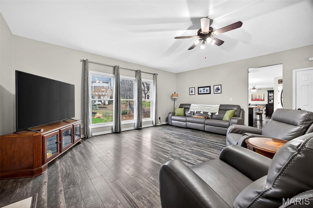 Spacious 5 Bedroom 4 bath 2 Story located on a quiet cul-de-sac in the boundaries of coveted Francis Howell school district. Great curb appeal meets timeless architecture in this home offering over 5,000 sq ft of finished living space, a 3 car garage, walk out finished basement, fenced yard, new composite deck and much much more! As you enter the home you will immediately notice the den/office to your left. The large family features a wood burning fireplace and opens to the large kitchen with granite counter tops, center island with electric cook top, stainless steel appliances, lots of cabinet space, walk in pantry, breakfast bar and breakfast room with bay patio and new french door leading to the new large deck with access to the yard complete with updated landscaping. The large hearth room is the perfect spot for morning coffee, a space to let the kids play or extra seating for entertaining! Updated- wood laminate floor carries through the entire main level! Round out the main level with a guest/powder room and main floor laundry. Upstairs you will find the huge 22 X 19 master bedroom suite that features french door entry, a walk in closet and a master bath with soaking tub/separate shower and a huge wraparound vanity with dual sinks, a makeup stations and plenty of storage. Three additional large bedrooms and a huge loft area that is great for studying or a play area. You'll also find a second, completely renovated full bath on the upper level The lower level has a walk out and offers an additional full bath, 5th bedroom, rec rm area, lounging/TV area with plenty of room for storage. Zoned/Dual HVAC, neutral paint- this home has room for a large or growing family or room to just spread out! Located in the heart of St Charles with easy access to highways, restaurants and shopping- an easy drive to the airport or a commute to St Louis.. and walking distance to Veterans Tribute Park that offers a splash pad, great playground, dog park and lake. This one really does have it all packaged up and ready to go! Unpack your boxes, you are HOME.