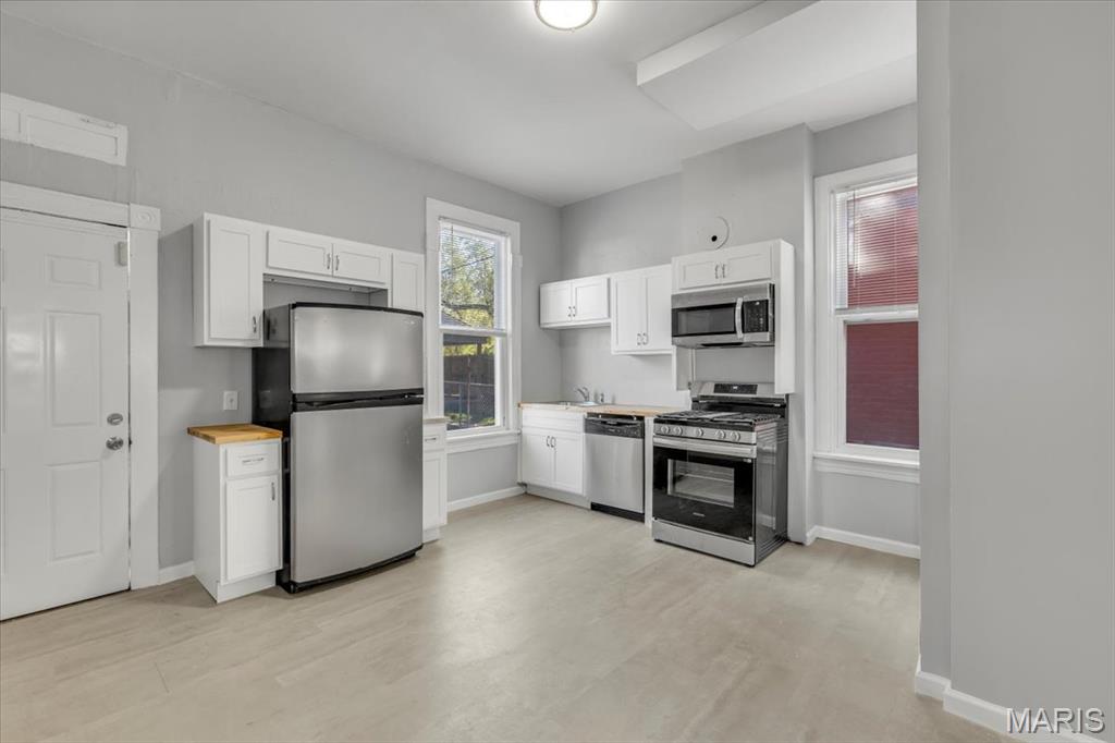 Welcome to 3820 Wisconsin Ave, a beautifully renovated 2-bed, 2-bath residence in the heart of St. Louis! Completely transformed in 2025, this move-in-ready home boasts over 1,600 square feet of modern living space. The open-concept layout is perfect for entertaining, featuring freshly refinished flooring, fresh paint, and updated lighting throughout. The kitchen is a chef's dream with new stainless steel appliances, butchers block countertops, and brand new cabinetry. Both spacious bedrooms offer ample closet space, and the pristine bathrooms feature contemporary finishes. Don't miss this turn-key opportunity in the 63118 area!