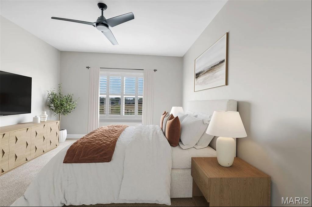 This now under construction Columbia with upgraded elevation offers a walk-out homesite and the perfect balance of refined design and functional living in Columbia Meadows. This thoughtfully designed detached ranch villa home delivers 1,583 square feet on the main level with 9’ ceilings and an open, light-filled layout ideal for everyday living and entertaining. The kitchen is elevated with 42” cabinetry with crown molding, soft-close dovetailed drawers, expanded drawer stacks, a double trash rollout, refrigerator cabinet build-out, pendant lighting, abundant recessed lighting, and Whirlpool stainless gas appliances. Black lever hardware throughout adds a modern, cohesive finish. The primary suite offers a spa-inspired bath with adult-height double vanities, Moen fixtures, rain shower head, transom windows for natural light, and a generous walk-in closet. Main-floor laundry adds convenience. The finished walk-out lower level expands the home with approximately 871 additional square feet, including a spacious rec room with six can lights, a private third bedroom with walk-in closet, and a full bath — creating a true 3-bedroom, 3 bath home with ideal guest or extended living space. Outdoor living is enhanced with a 12’ x 12’ low-maintenance sun deck and irrigation-equipped fully sodded yard. Additional highlights include 5.25” baseboards, garage door opener, coach lights, and a comprehensive low-voltage package. Columbia Meadows offers the privacy of fully detached homes with the convenience of low-maintenance living in a professionally managed community just minutes from I-70. Luxury craftsmanship. Functional design. Walk-out homesite. Photos are of another completed home and not all features are the same see spec sheet for details.