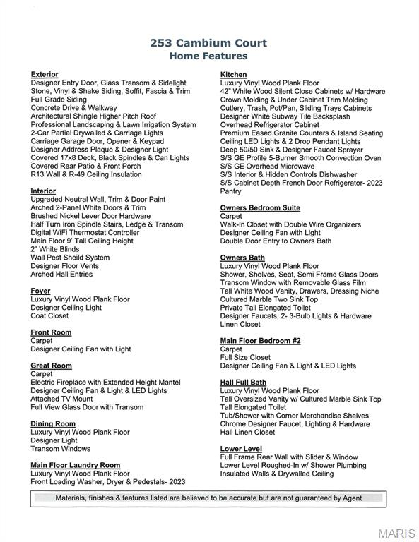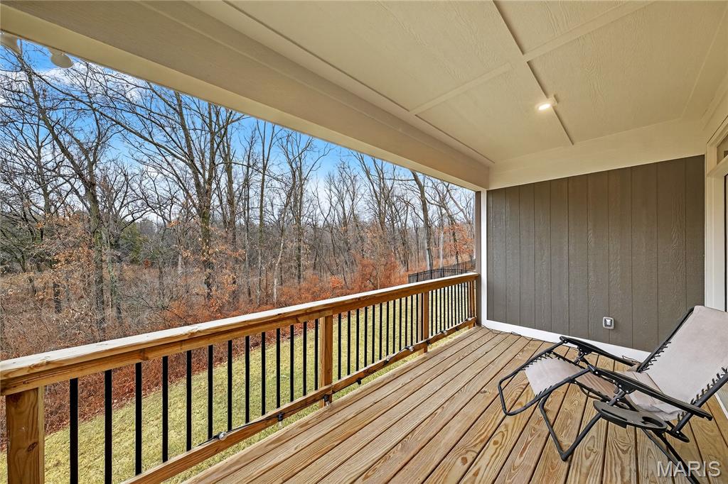 WHY WAIT TO BUILD? This 2 year NEW Walkout Ranch sits on a Premium Cul-de-Sac lot BACKING TO THICK WOODS! Enjoy Carefree Living in the Desirable Amberleigh Neighborhood! LOTS OF UPGRADES! You will LOVE the feel of the 9' Main Floor Ceiling Height & the Luxury Vinyl Wood Plank Floors! Built by Fischer Homes, the Wilmington Patio Collection offers 1,758 square feet & 2 Bedrooms, 1 Office can be converted to a 3rd Bedroom and 2 Full Baths. The Great Room features a Designer Electric Fireplace and a WALL OF WINDOWS with PRIVATE VIEWS! Enjoy your coffee or favorite drink on the Covered Deck overlooking the peaceful Backyard & TREES! The Kitchen is the Heart of the Home & you will LOVE this one! Premium White Wood Cabinets with 42" Tall Uppers, Crown & Lower Molding, Under Cabinet Lighting, Hardware, Trash Cabinet, Granite Counters, Island with Seating, Can Lights & Designer Pendant Lighting! Stainless Smooth Top 5 Burner Oven & Cabinet Depth French Door Refrigerator stay! Main Floor Laundry with NEWER Front-Loading Washer/Dryer on Pedestal Drawers stay! Owners Suite features Double Door Entry to the Owners Bath with Tall Premium White Vanity with 2 Sinks & Dressing Niche, Private Tall Elongated Toilet, Premium Full Size Shower with Bench Seat, Merchandise Shelves, Glass Doors & Transom Window! HUGE Walk-In Closet & Linen Closet too! Bedroom #2 has access to a Luxury Hall Bath with Tall Vanity & Toilet! Lower Level is ready to Finish with Drywalled Ceiling, Insulated Walls, Egress Window & Slider to the Covered Patio! Smoke & Pet Free! Lawn Irrigation & Inner Wall Pest Shield! Custom 2" Blinds & Designer Ceiling Fans thruout! Amberleigh allows Fenced Yards! Enjoy Sidewalks & the Walking Trail around the neighborhood Pond! WENTZVILLE SCHOOLS: Duello Elementary, Frontier Middle & Liberty High! City of OFallon Amenities! Nearby NEWER Restaurants, Grocery, Shops & More! Put this one on your List to Tour! A Must SEE & FEEL for its New Owner!