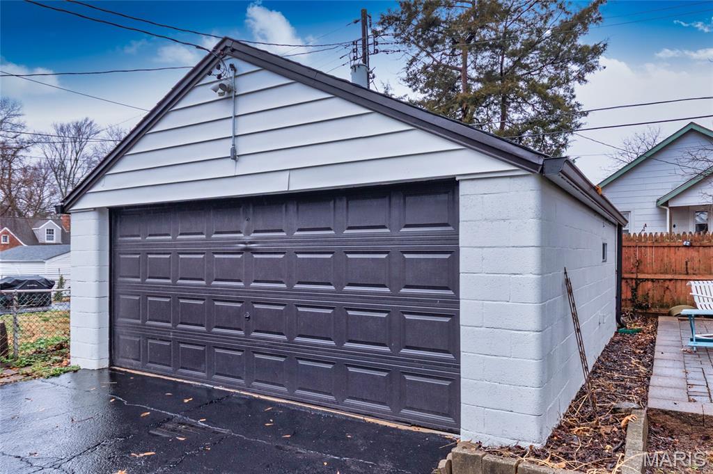 LOCATION! LOCATION! LOCATION! Welcome home to this beautifully updated, freshly painted, property offering 1020 sq ft of comfort, space, and peace of mind! Enjoy bright, inviting living spaces with wood flooring throughout the living room and both bedrooms. The refreshed kitchen features 42" white cabinets, ceramic tile flooring, and stainless steel appliances, including a refrigerator and gas stove. The finished lower level offers a cozy 18x10 family room, a HUGE custom walk-in closet, and a spacious utility room complete with washer, dryer, slop sink, half bath, and abundant storage. Double-hung thermal tilt-in windows add energy efficiency and easy maintenance. Outside, you'll love the oversized 2-car garage, an uncommon and highly desirable feature in this neighborhood, 6-foot wood privacy fence, and large concrete paver patio; perfect for relaxing or entertaining. Major updates include a fully replaced sewer lateral with PVC, updated electrical inside and out (including 220 in the garage), new roof, gutters, asphalt driveway, water heater, sump pump and fresh paint throughout. This move-in-ready home combines thoughtful upgrades with everyday convenience, don't miss your opportunity to make it yours!