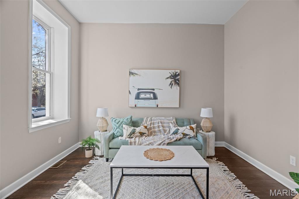 Beautifully updated all-brick townhouse in the heart of McKinley Heights with a true 4-bed, 3.5-bath layout — including a bathroom on every level, which makes the flow of this home just work. Three full stories of living space with high ceilings and multiple living areas give you flexibility depending on how you actually live — whether that’s working from home, co-living, or just having room to spread out. The kitchen is clean and functional with stainless steel appliances and a peninsula layout that connects easily to the main living space. The primary suite has its own private en suite, and there is second-floor laundry (washer/dryer included) exactly where you want it. Outdoor space isn’t an afterthought here — balcony, deck, and a fenced backyard with patio — all set up for low-maintenance city living. Right where you want to be — close to Soulard, Lafayette Square, and with easy access to everything downtown.