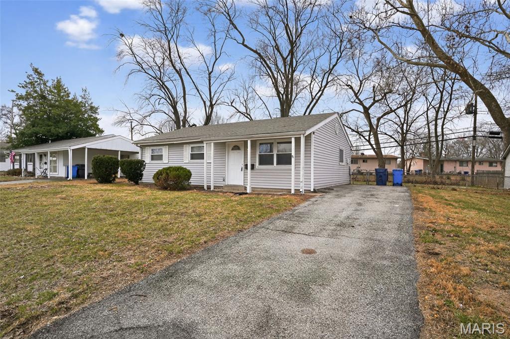Great single-story ranch offering a functional layout and spacious yard. The exterior features low-maintenance vinyl siding, a covered front porch, mature trees, and a long driveway for off-street parking. Inside, the home includes a bright living room with wood-look flooring and neutral tones throughout. The kitchen is equipped with wood cabinetry, laminate countertops, a gas range, refrigerator, and ample cabinet storage. Three bedrooms provide comfortable space with closets and natural light. The full bath includes a tub/shower combination and single vanity. A separate utility area offers additional storage, and the large backyard provides plenty of room for outdoor enjoyment.