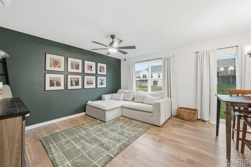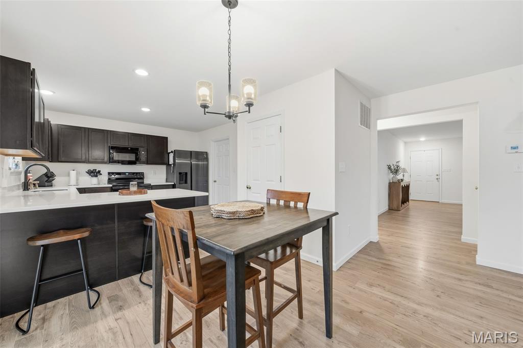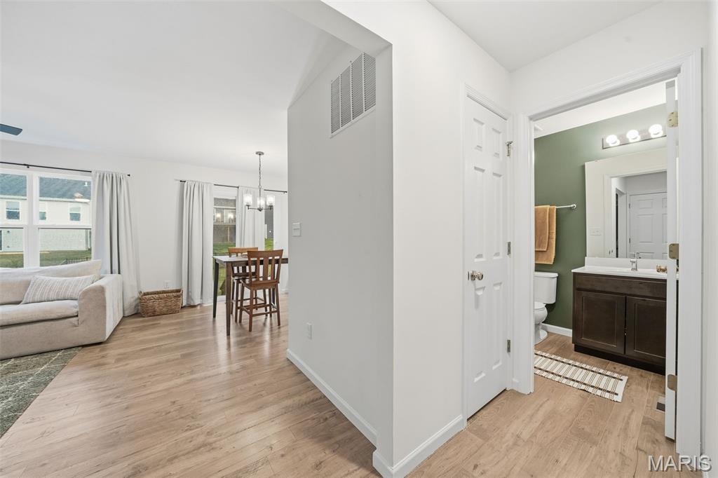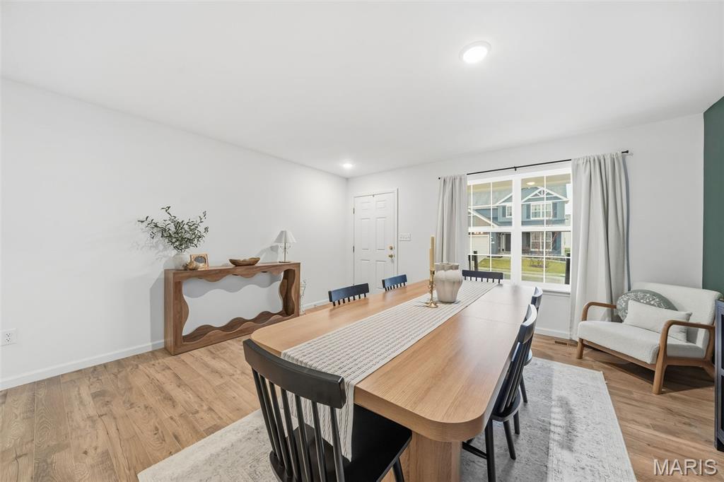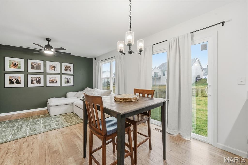 Better than new and ready for you, this 2024-built home has that fresh, modern feel everyone’s looking for, with a layout that just makes sense the minute you walk in. From the start, the covered front porch gives you that “this feels like home” moment… whether it’s morning coffee or unwinding at the end of the day. Step inside and you’re welcomed by a front dining space that’s as flexible as it is inviting, perfect for hosting, a home office, or whatever fits your life. Keep moving, and the home opens up into a bright, comfortable main living area where natural light pours in and the flooring ties everything together. The kitchen is one of those spaces that just works, clean finishes, and a breakfast bar that naturally becomes the gathering spot. It flows right into the dining area and living room, so whether you’re hosting or just hanging out, everything feels connected without feeling crowded. And the living room… this is where it gets good. The accent wall adds just enough character to make the space feel cozy and elevated at the same time, it’s the kind of room you’ll actually use every day. You’ve also got a main-floor half bath and laundry right where you need them. Upstairs, the primary suite is your own little sacred space, with a full bath and walk-in closet. The three additional bedrooms and second full bath give you room to grow, host, or set up that work from home space without sacrificing comfort. The basement is ready when you are! It's already set up with an egress window and full rough in for a bathroom, making future finishing that much easier. And behind the scenes, you’ve got thoughtful upgrades like a whole home water conditioner, whole home humidifier, and dual-zoned HVAC system keeping things comfortable year round. Out back, the fully fenced yard gives you space to spread out, with just a little extra breathing room and privacy. And the location? Walking trails, a lake, gazebo, and over 35 acres of common ground. Plus, you’re just minutes from I-70, Highway T, Wentzville Crossroads, wineries, and golf courses. Located in the Wentzville School District, this home has been well cared for and is ready for someone new to step in and make it their own.
