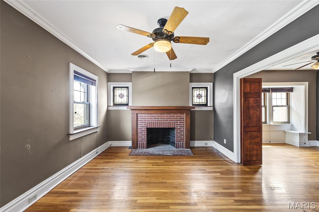 This large, beautiful brick home offers a perfect blend of classic charm and modern convenience. A welcoming covered front porch invites you in, perfect for relaxing or greeting neighbors. The kitchen features a bright breakfast nook and a spacious butler’s pantry, ideal for meal prep and entertaining. The living room is warm and inviting with a wood-burning fireplace and gorgeous wood floors. Natural light floods the home through light, bright spaces accentuated by charming stained glass windows throughout. Upstairs, the master suite includes a luxurious bath and a sunny porch, creating a peaceful retreat. All bedrooms are generously sized, offering comfort and flexibility for family or guests. Outside, enjoy a double lot with a fenced yard, a large deck, and ample space for outdoor activities. The home includes a 2-car garage and is perfectly situated for excellent walkability and city living. This property combines elegance, space, and location for the ideal urban lifestyle.