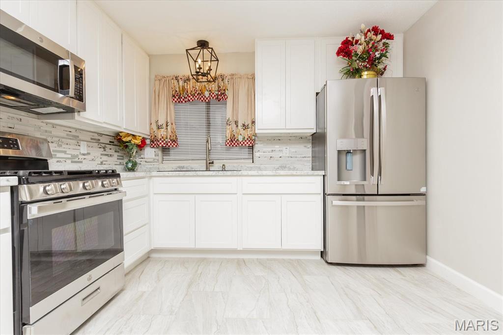 Welcome to this beautifully updated 3-bedroom, 2.5-bath split foyer home offering modern finishes and functional living space. The upper level features luxury vinyl plank flooring throughout the spacious living room, breakfast area, and brand-new kitchen complete with 42" cabinets, stainless steel appliances, refrigerator with ice and water in the door, gas range, dishwasher, and microwave. Down the hall you’ll find a fully updated hall bathroom, two comfortable carpeted bedrooms, and a primary suite with a completely remodeled private bath. The lower level offers a large family room with fireplace, perfect for cozy evenings or entertaining guests. This level also includes a convenient half bath and utility/laundry room. The rear-entry tuck-under garage provides space for two vehicles plus additional storage. One of the standout features of this home is the owned solar panel system, helping power the home and significantly reducing — or potentially eliminating — your electric bill. Step outside to enjoy the back deck and large level yard, complete with a turnaround driveway that provides extra parking and space for outdoor activities. Conveniently located near shopping, restaurants, parks, and public transportation. Schedule your showing today and make this move-in ready home yours!