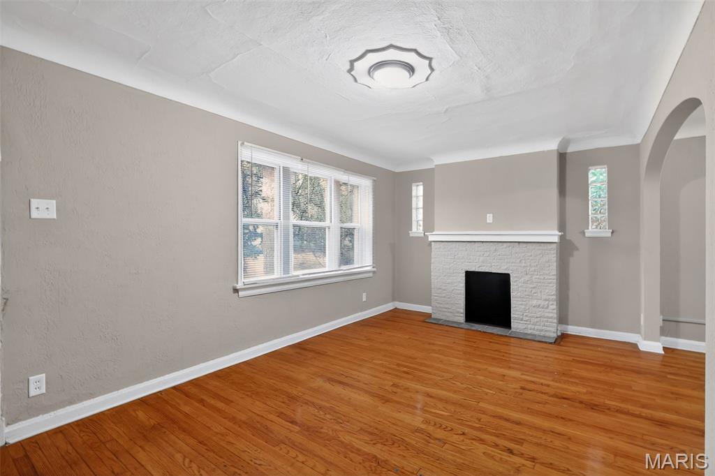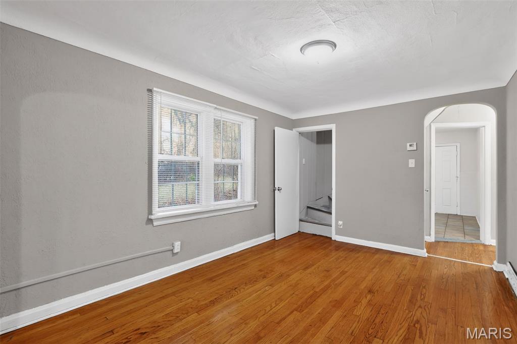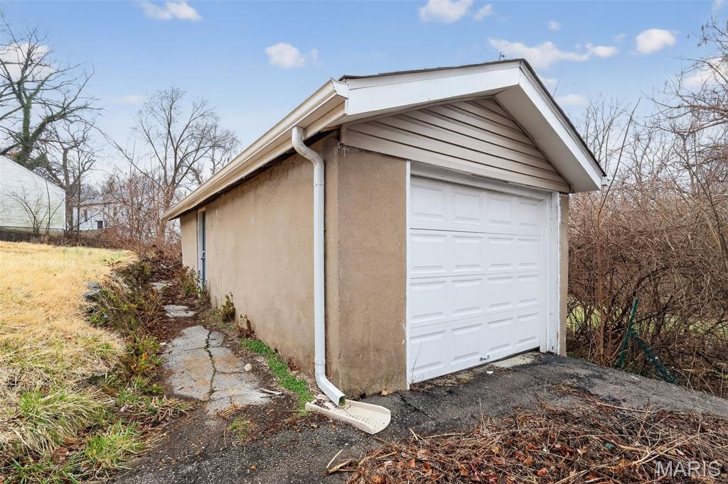 Stunning brick bungalow full of character and charm! This spacious 4-bedroom, 1-bath home welcomes you with fantastic curb appeal, natural light, and neutral colors that create a warm and inviting atmosphere throughout. Step inside to a huge living room featuring a beautiful masonry fireplace—perfect for cozy evenings and gathering with friends and family. Gorgeous wood floors flow through much of the main level, adding timeless style. The main floor includes the primary bedroom and an additional guest bedroom, a full bathroom, and a formal dining room ideal for entertaining. The bright kitchen offers great functionality and comes equipped with a range and refrigerator. Upstairs, you’ll find two additional bedrooms providing extra space for family, guests, or a home office. Outside, enjoy a large yard, a covered back porch perfect for relaxing, and a detached 1-car garage for added convenience. The full basement includes laundry hookups and plenty of room for storage or future possibilities. With classic bungalow charm, generous living space, and desirable features throughout, this St. Louis home is one you won’t want to miss!