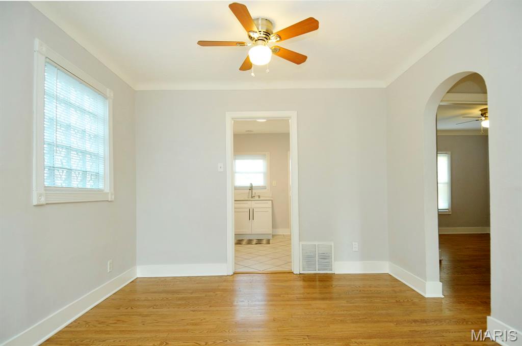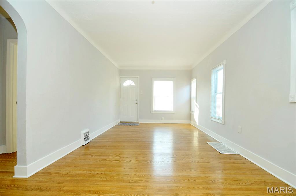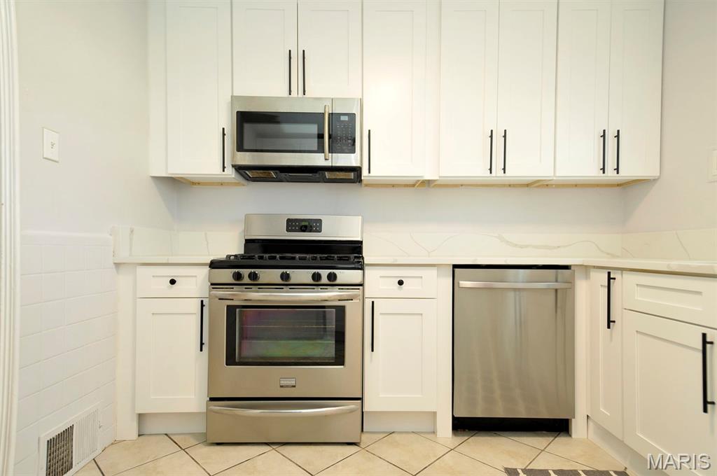 Great rehabbed 2 bedroom 2 bathroom home located in convenient South St Louis City. As you enter you are greeted by large open living room/dining room combo with gleaming freshly refinished original hardwood flooring, followed by kitchen with new white kitchen cabinets, quartz counter top, stainless steel appliances and ceramic tile flooring. Full bathroom, primary bedroom with large closet and another bedroom both with wood flooring complete main floor level. Partially finished walk up lover level offers large rec room, extra office/hobby room and full bathroom. Nice covered back porch accessible thru kitchen, flat fenced back yard and 2 parking spots. New windows, new siding, freshly painted, make your appointment today!